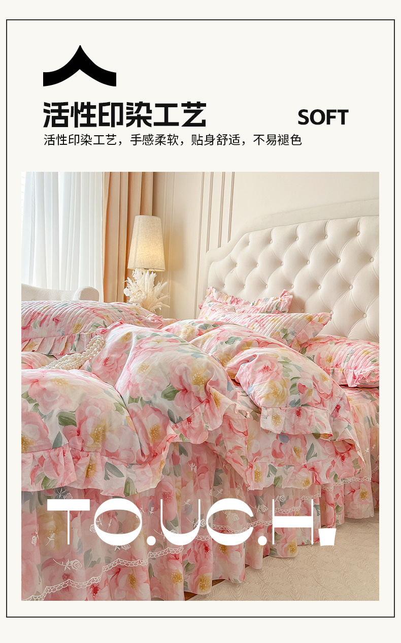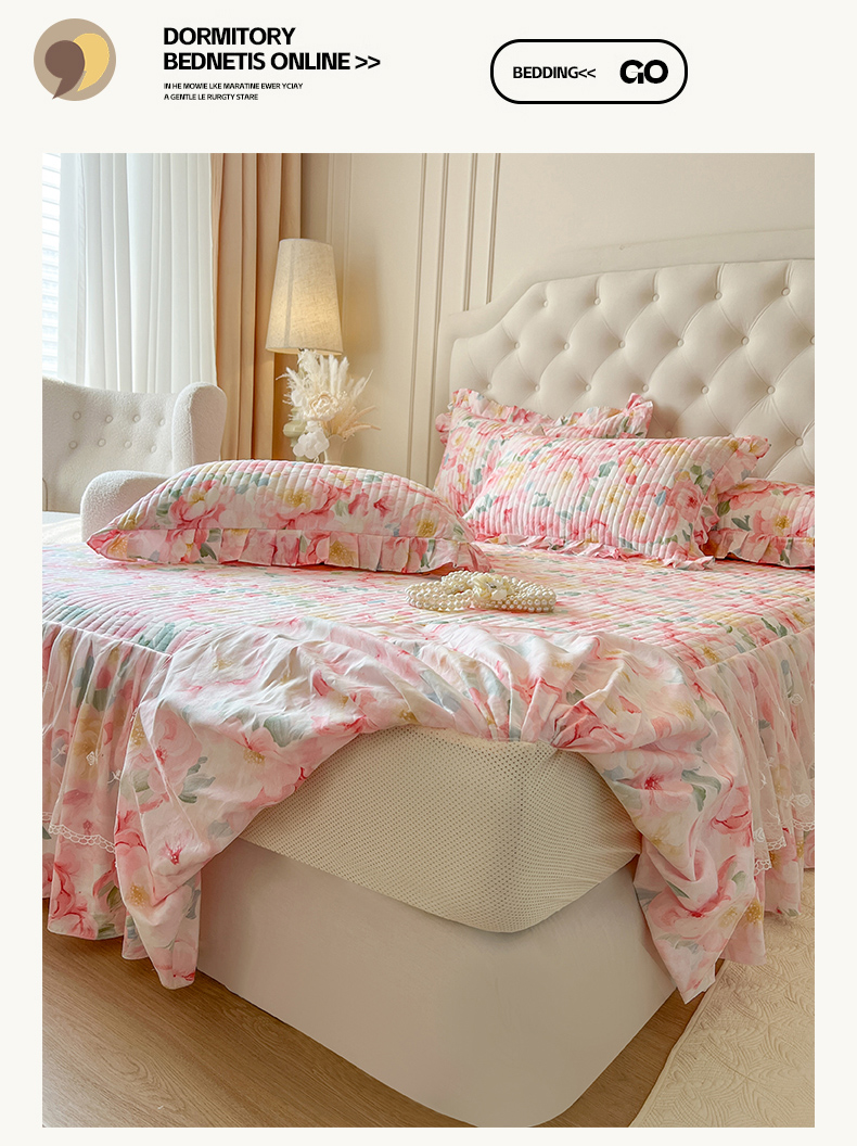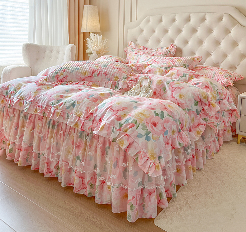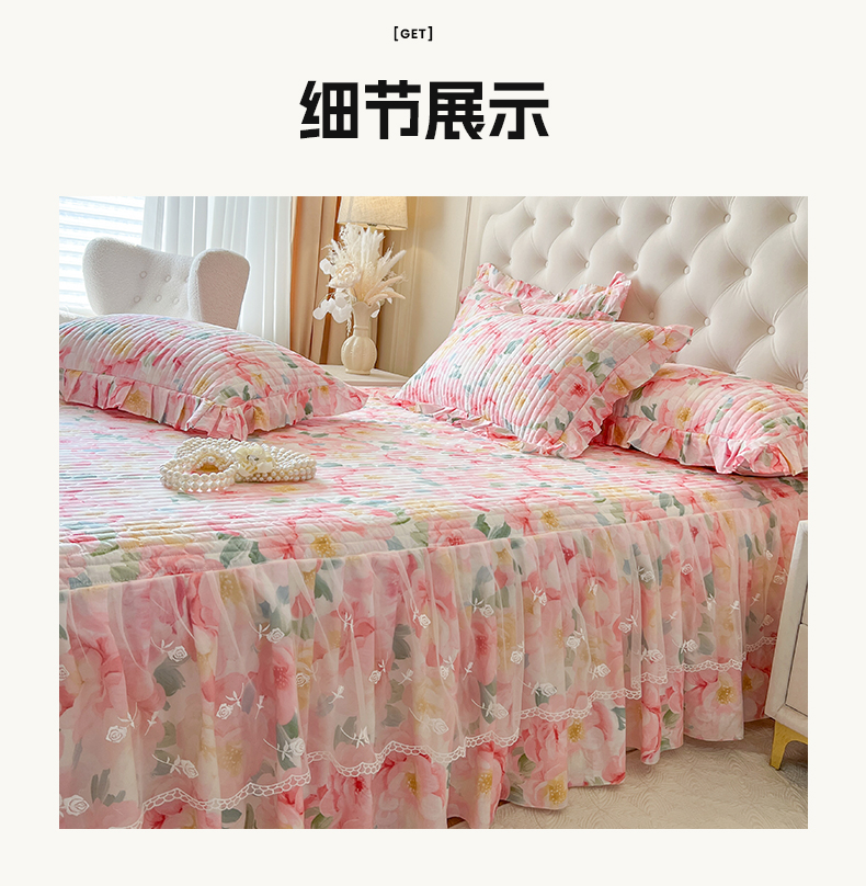 当前位置: 91家纺网 > 商品网购 > 床品套件 > 四件套 > 全棉普通四件套 > 恋尚 2025新款全棉纯棉蕾丝印花床笠裙四件套 蔓朵