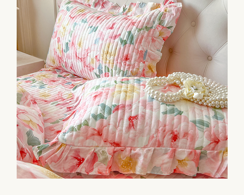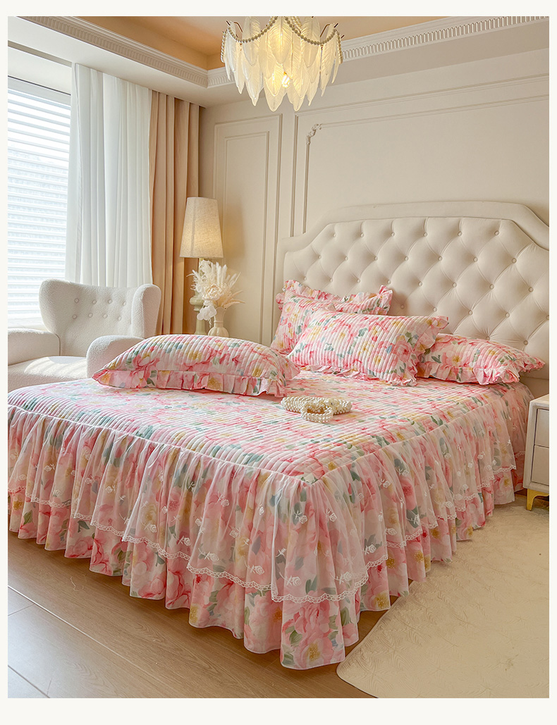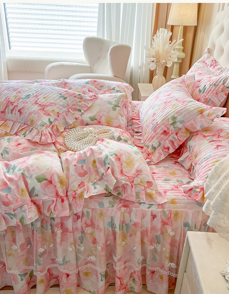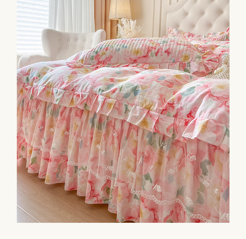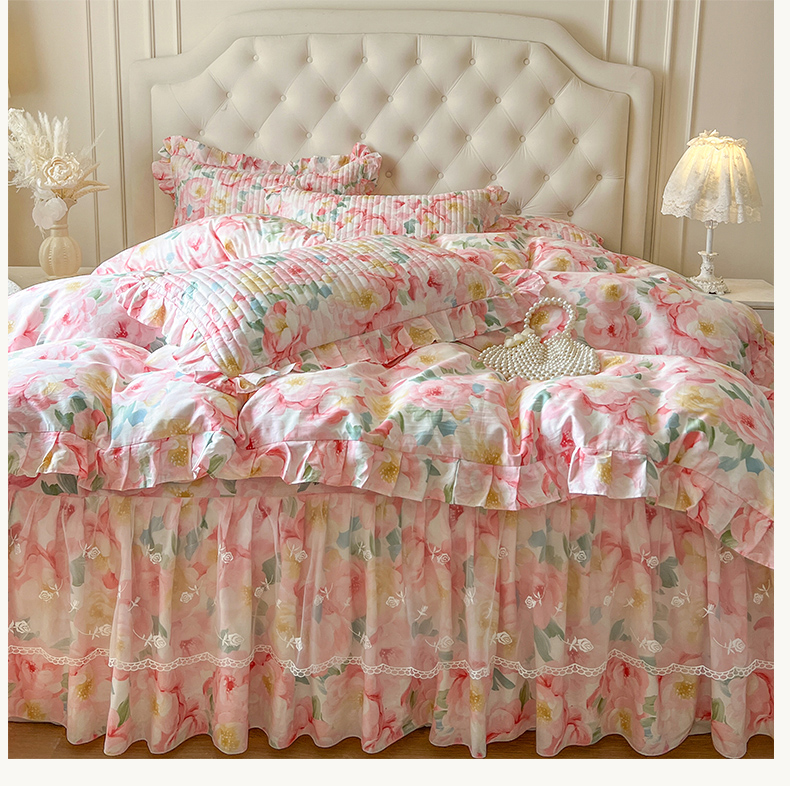 当前位置: 91家纺网 > 商品网购 > 床品套件 > 四件套 > 全棉普通四件套 > 恋尚 2025新款全棉纯棉蕾丝印花床笠裙四件套 蔓朵