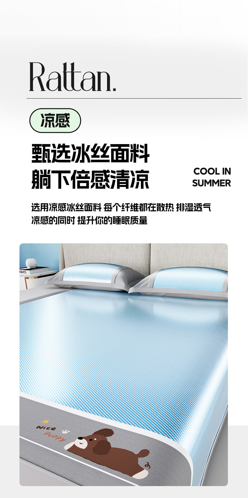 川悦生活 2025新款纯色凉感冰丝席-大床 眠眠熊猫-银粉