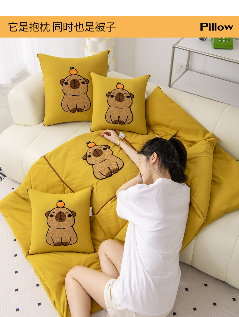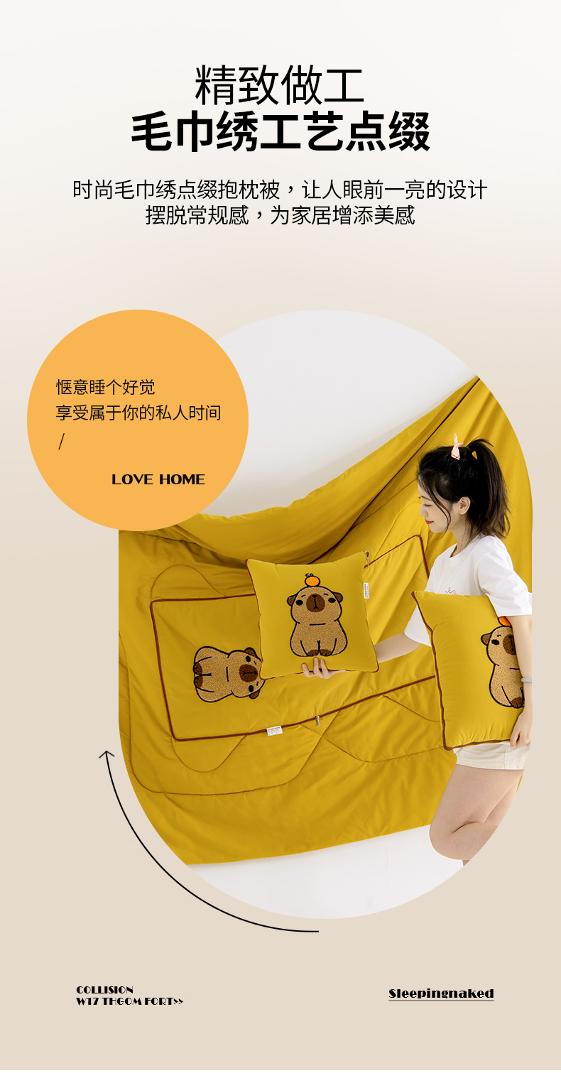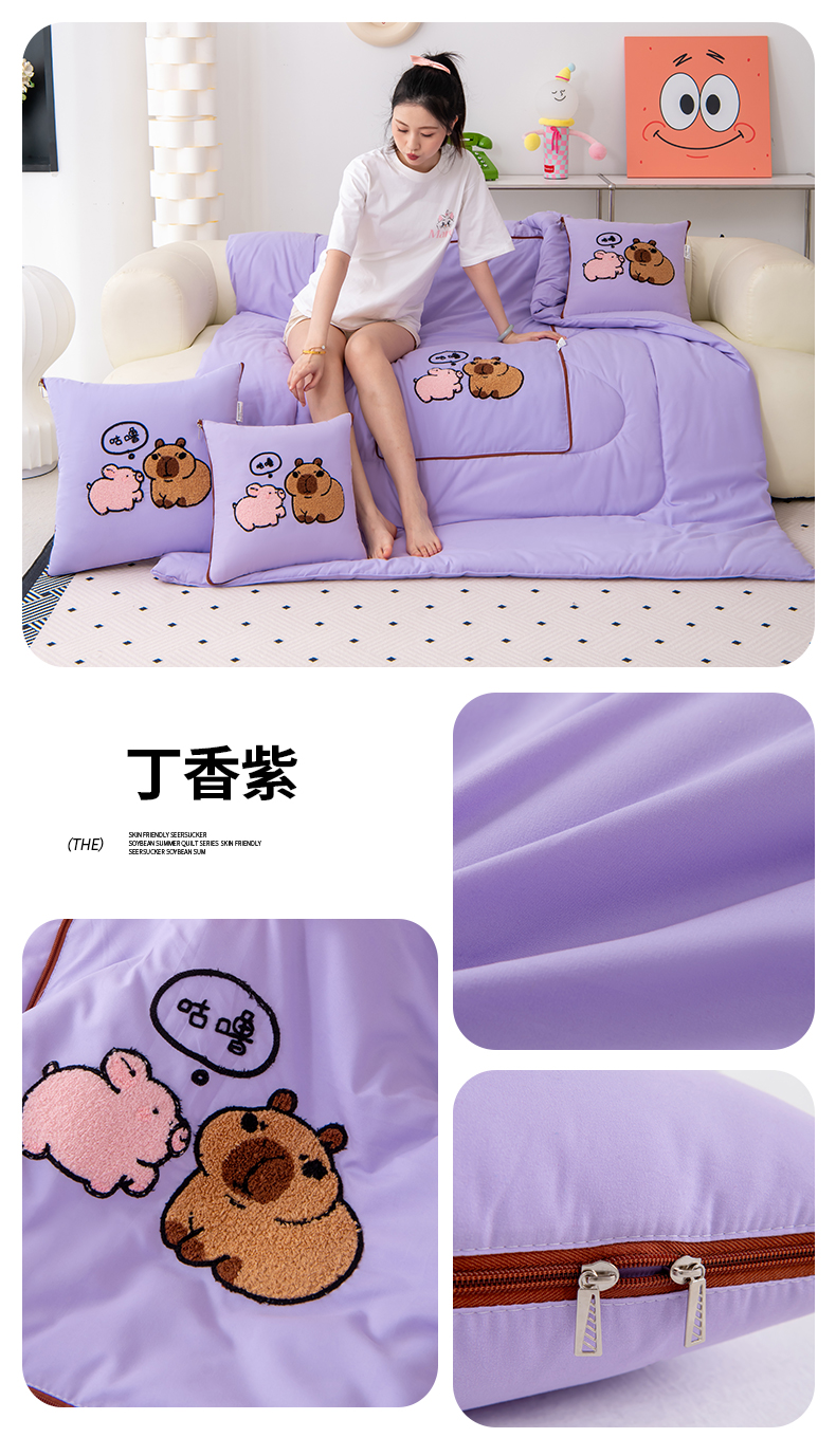 商品名称:宝马家纺(原梦童画)2025新款卡皮巴拉四季款磨毛毛巾绣抱枕被 丁香紫
