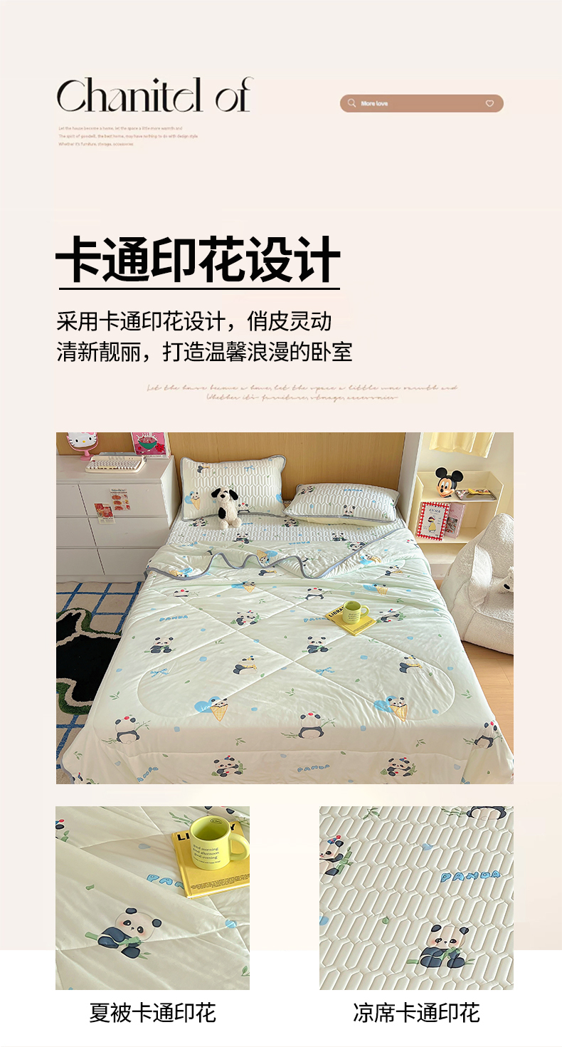 • 91家纺网 家纺一手货源 找家纺 希诺家居 2025新款卡通小清新牛奶针织棉夏被空调被子被芯 竹子熊猫