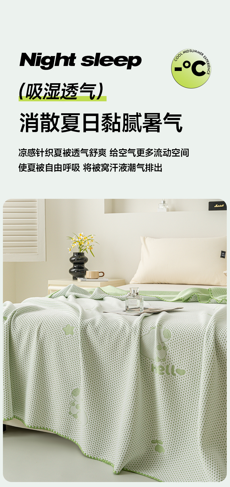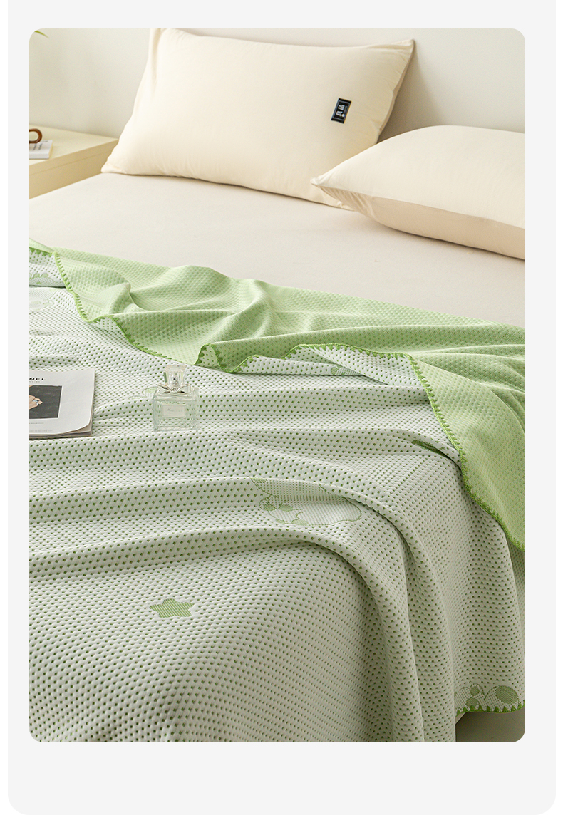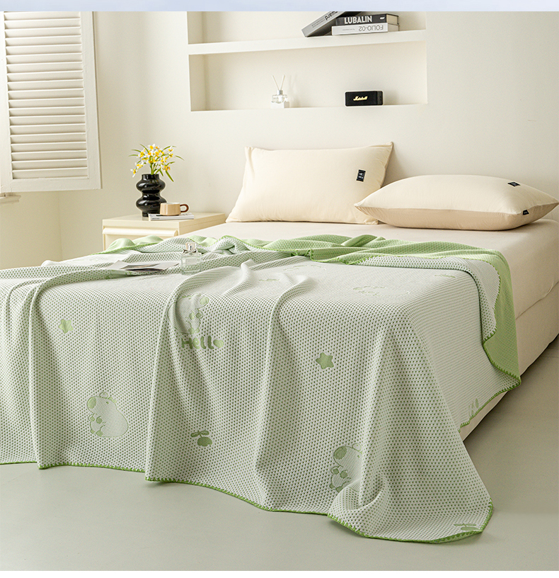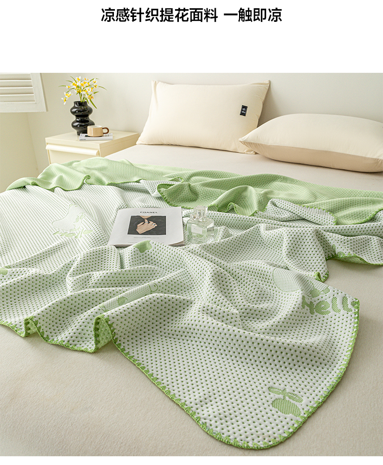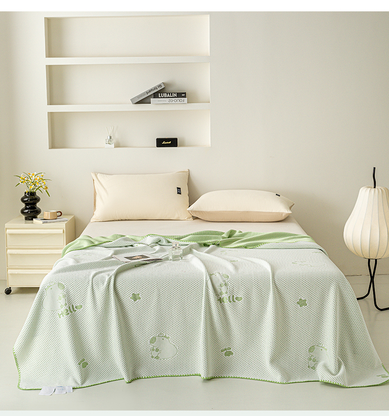 梦尚舒 2025新款直播热款凉感针织提花盖毯子夏被贝壳边空调被 卡皮巴拉-绿