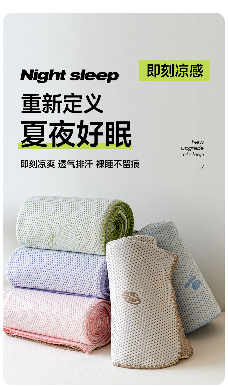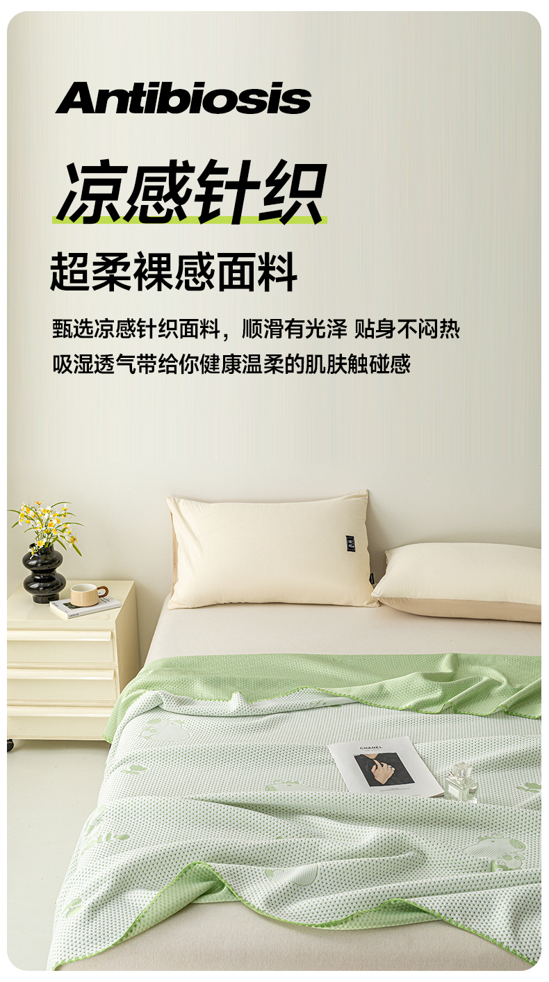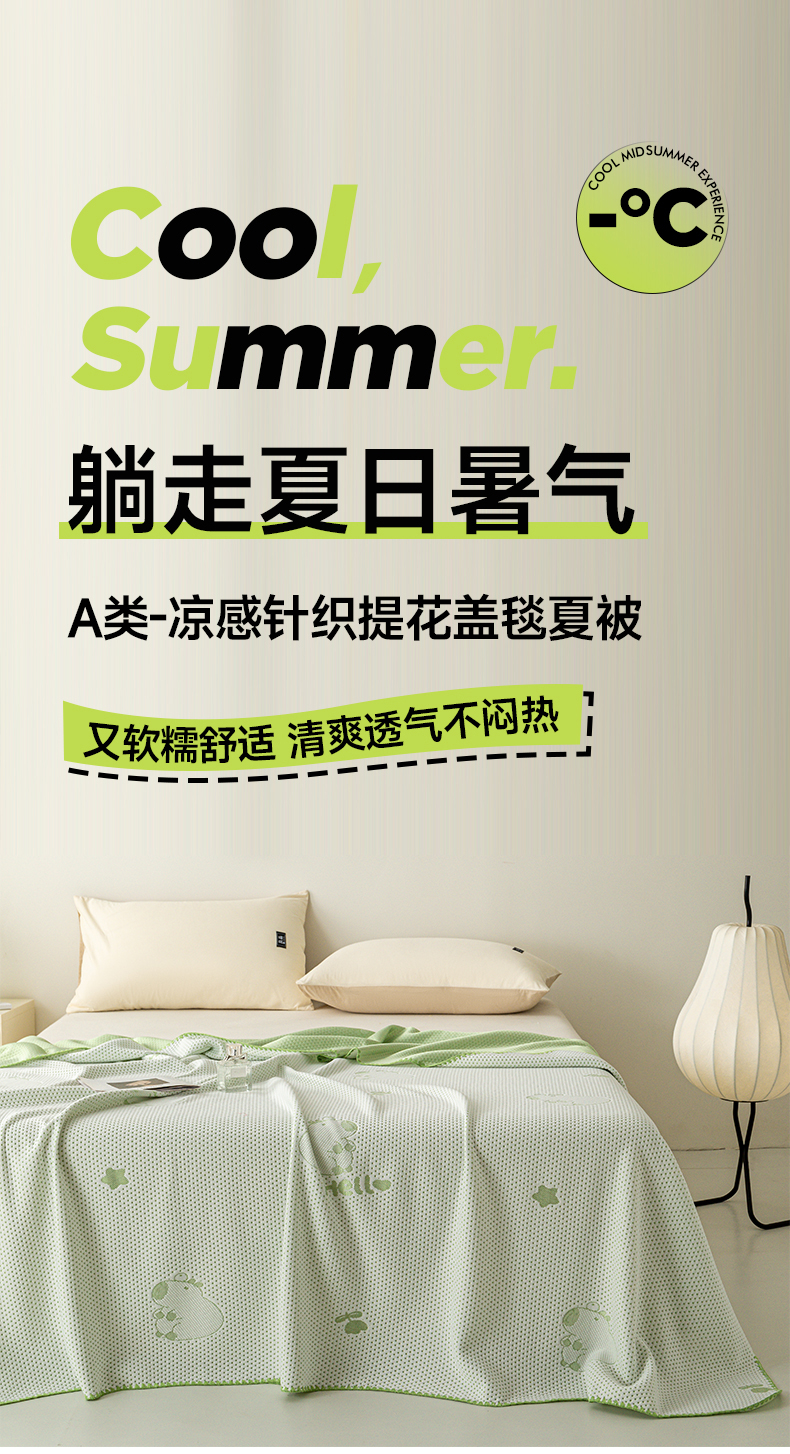 梦尚舒 2025新款直播热款凉感针织提花盖毯子夏被贝壳边空调被 卡皮巴拉-绿