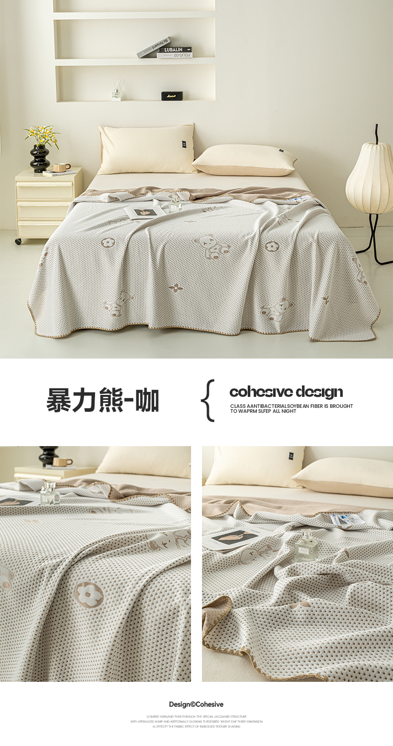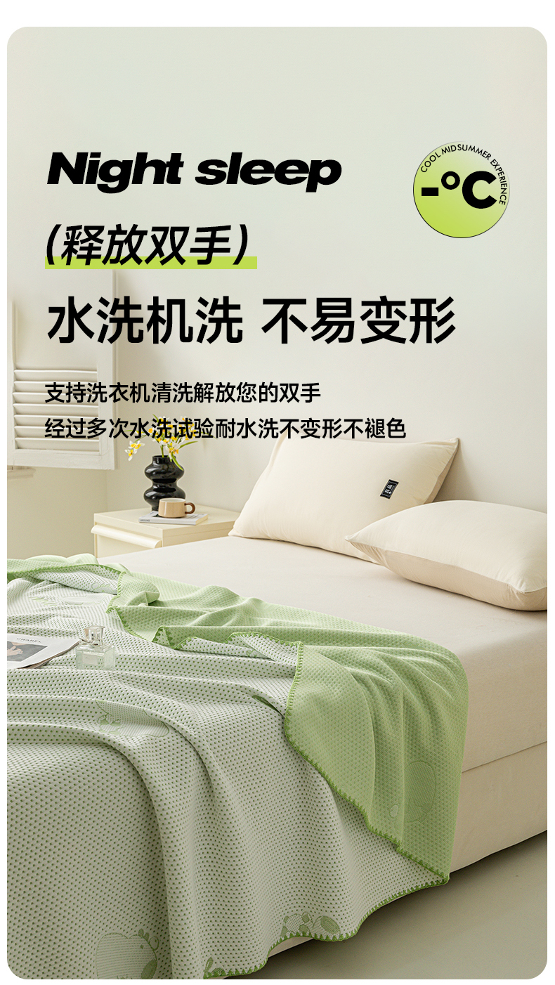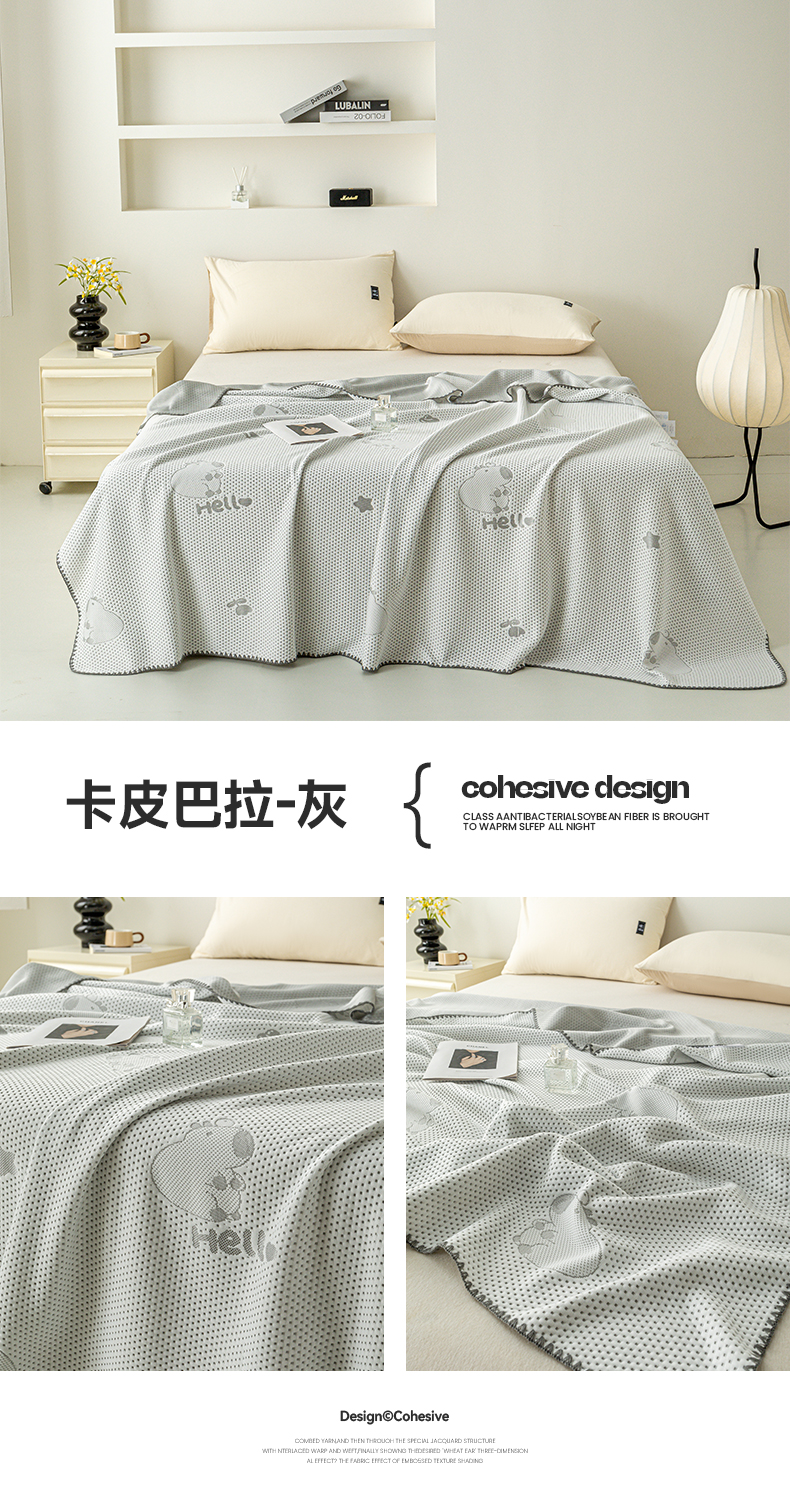 商品名称:梦尚舒 2025新款直播热款凉感针织提花盖毯子夏被贝壳边空调被 卡皮巴拉-绿