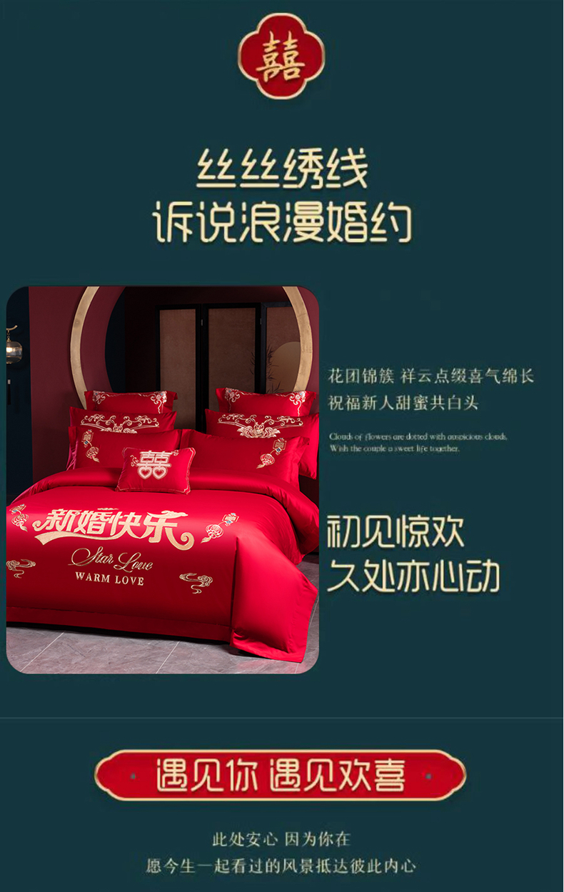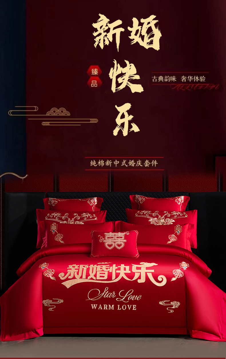 当前位置: 91家纺网 > 商品网购 > 床品套件 > 多件套 > 多件套 > 博之洋婚庆 2025新款全棉长绒棉刺绣新中式婚庆系列多件套新婚快乐