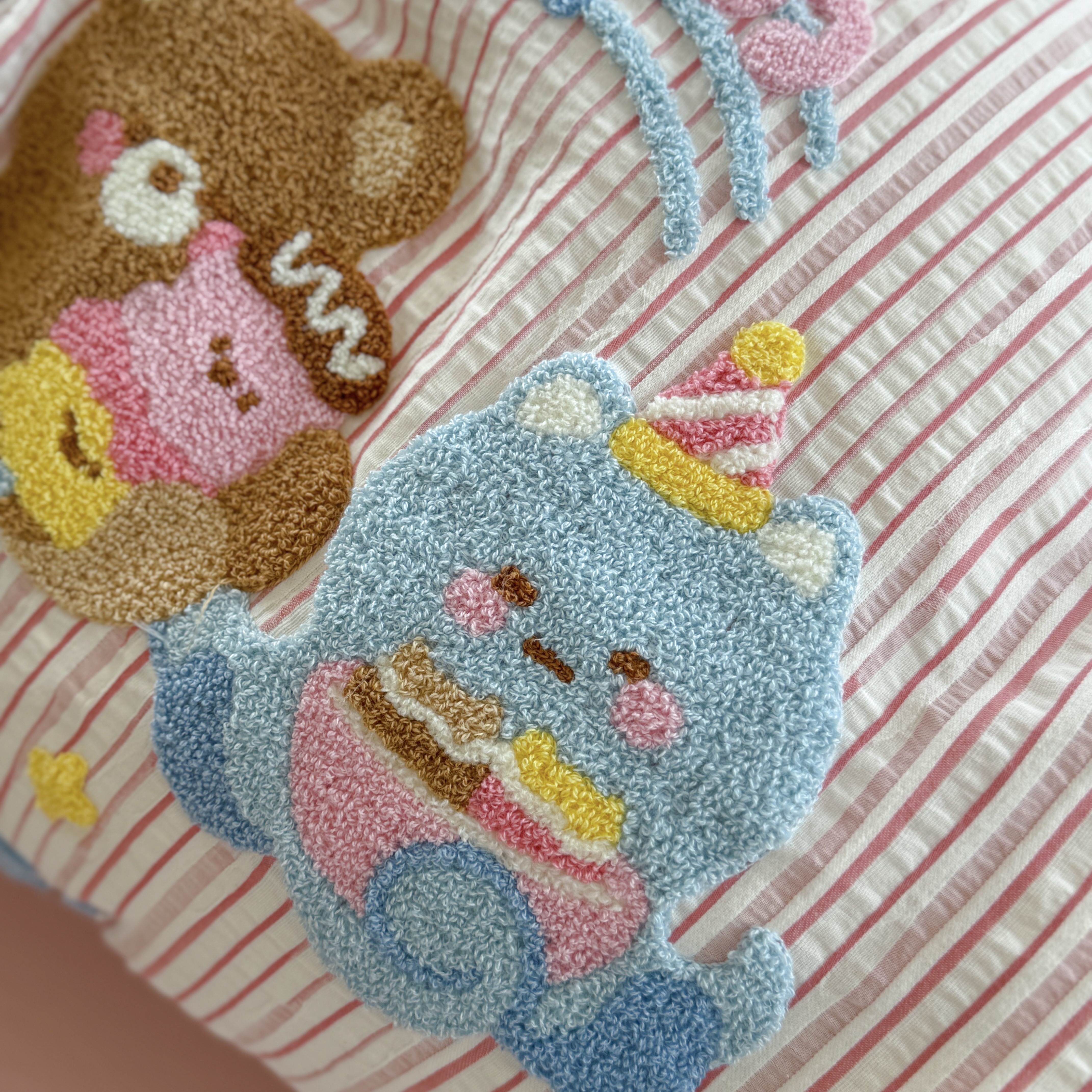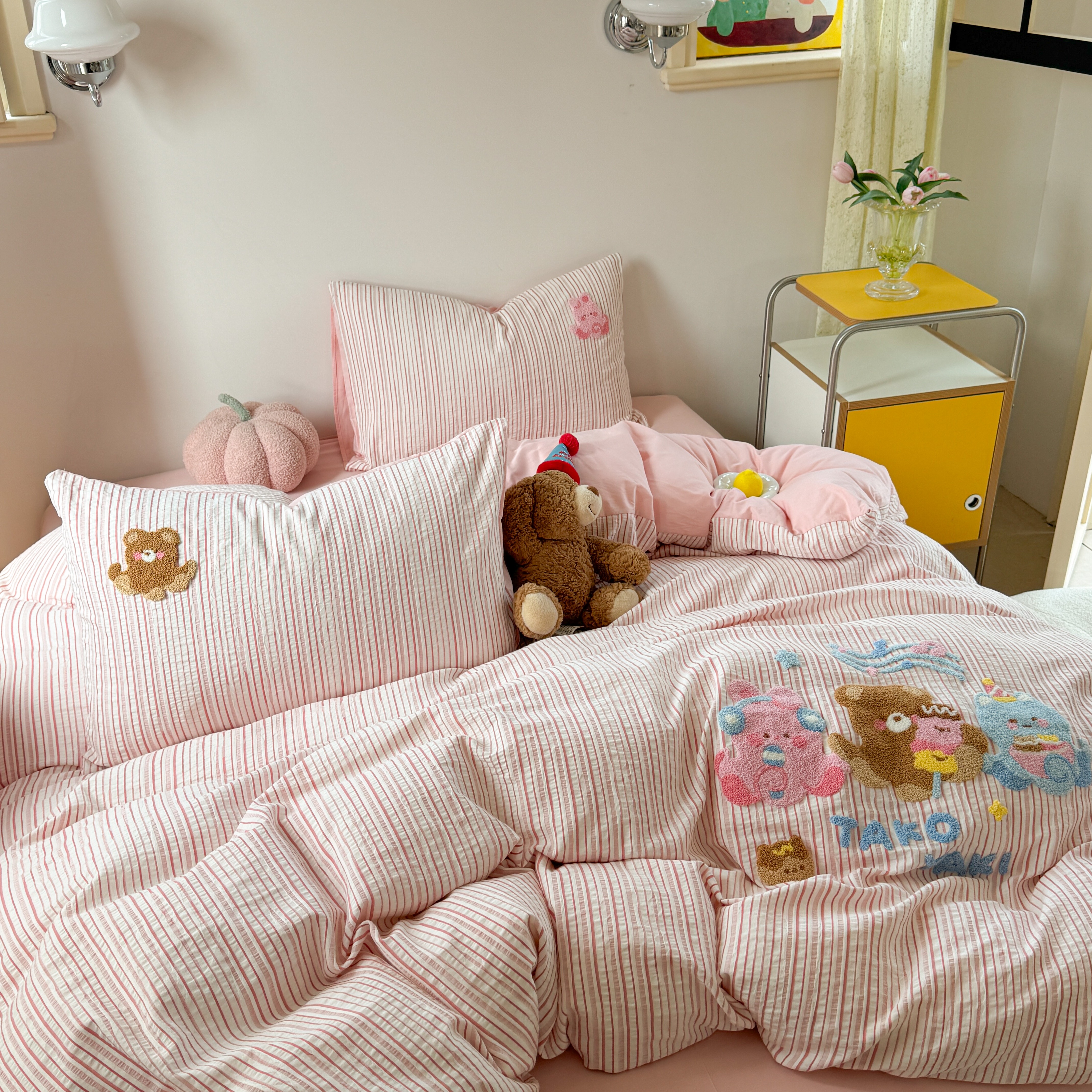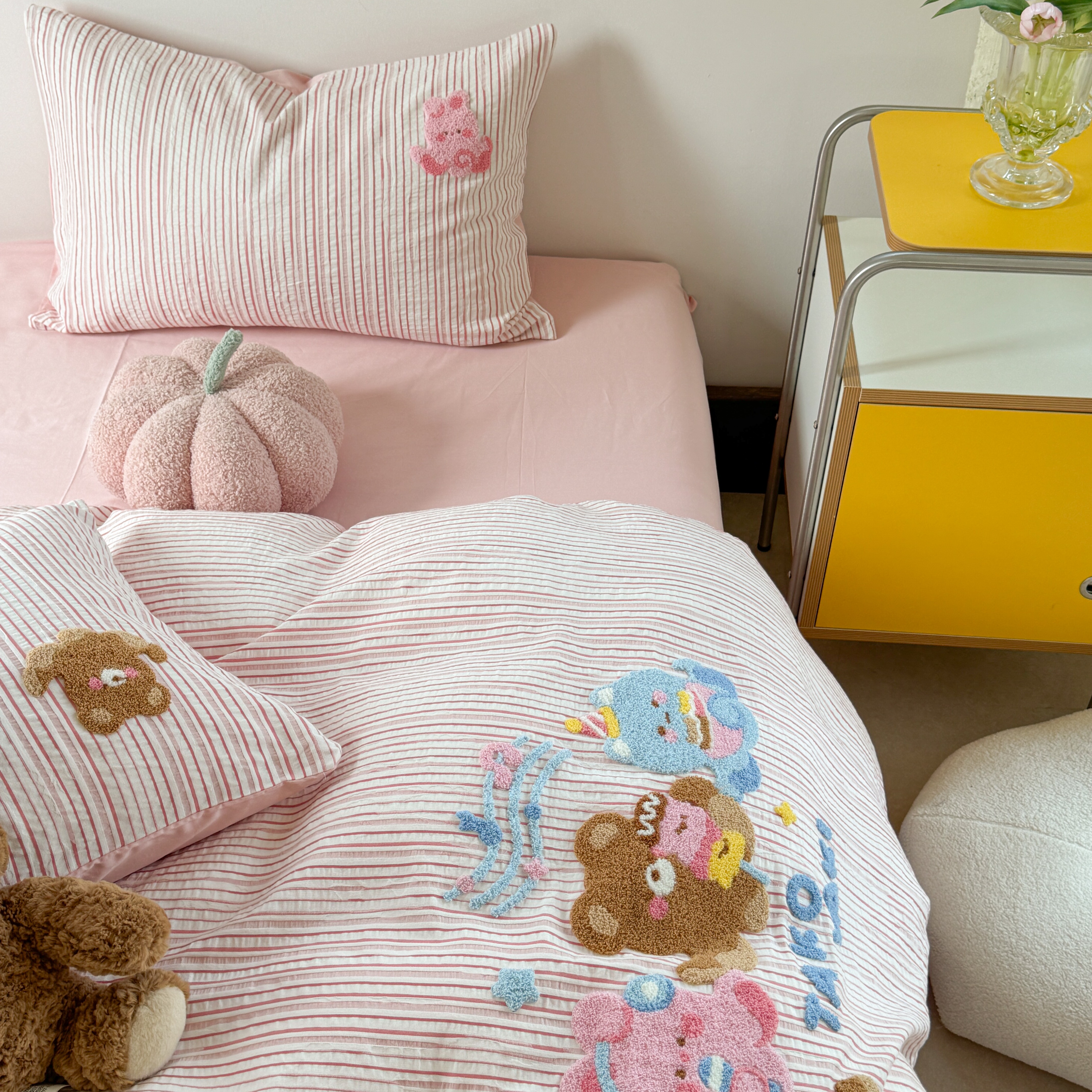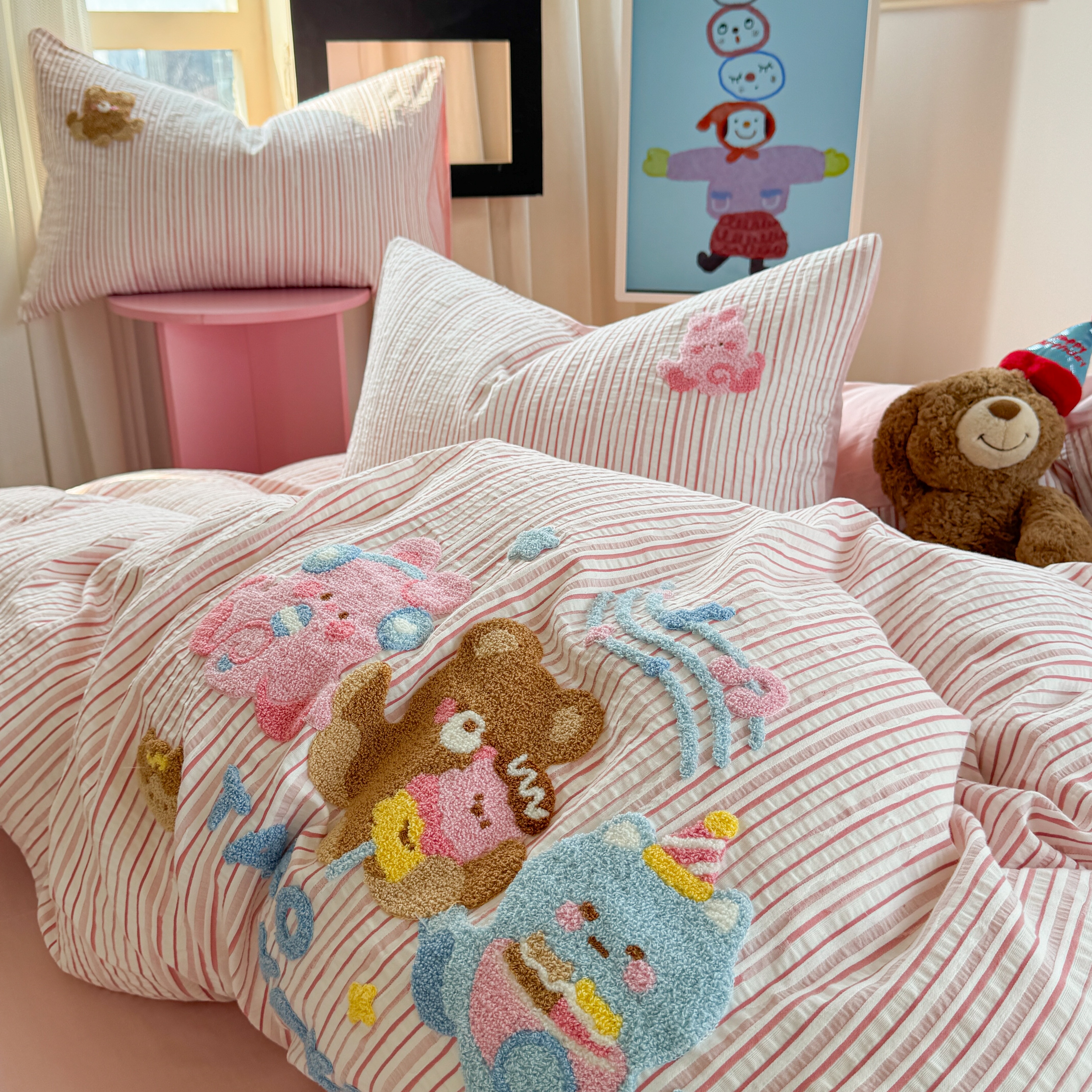 (总)柚子YOUTH 2025新款全棉双层纱贴布绣四件套,棒球熊猫,贝雷帽,冰淇淋小熊,格子玩偶,碎花小兔,小黑猫