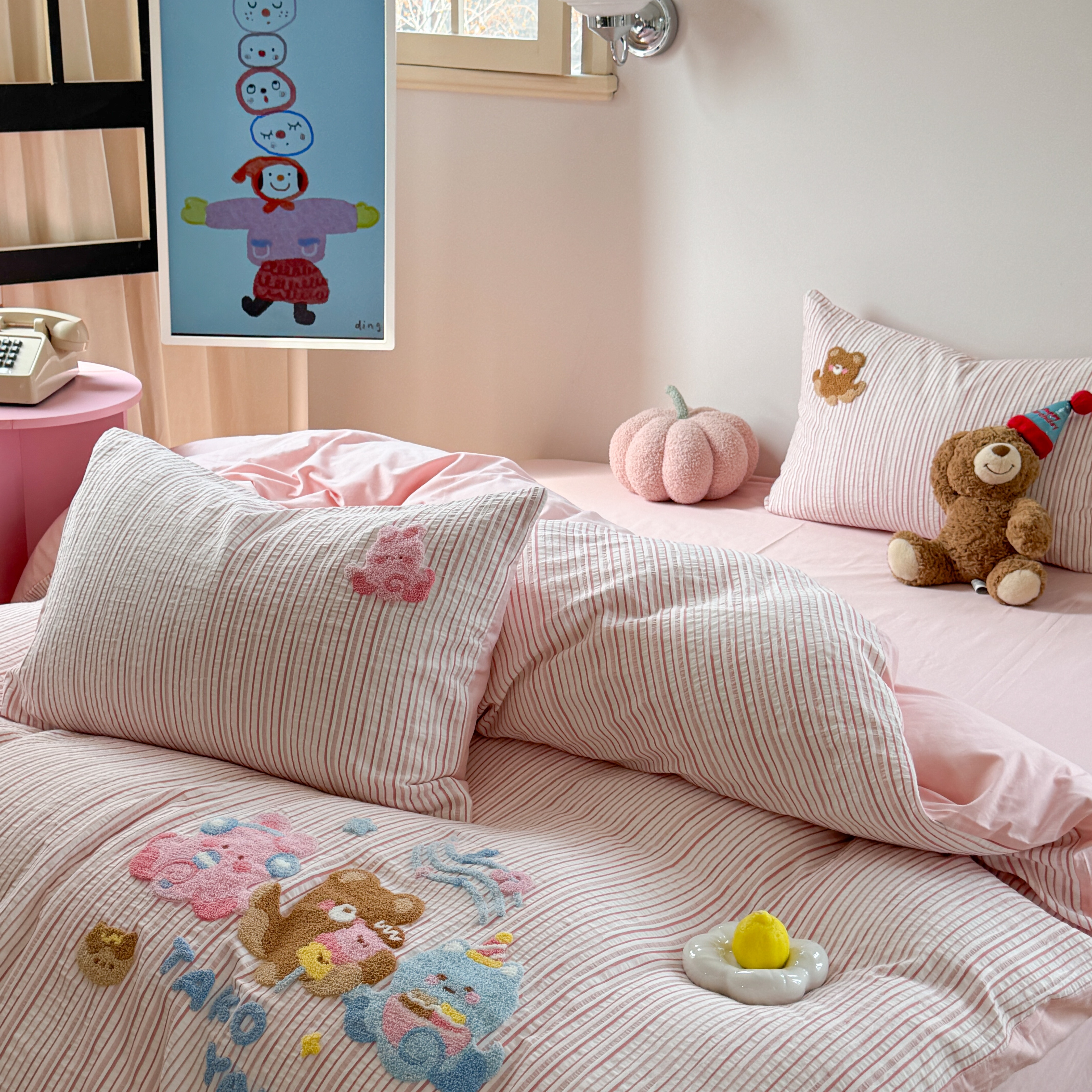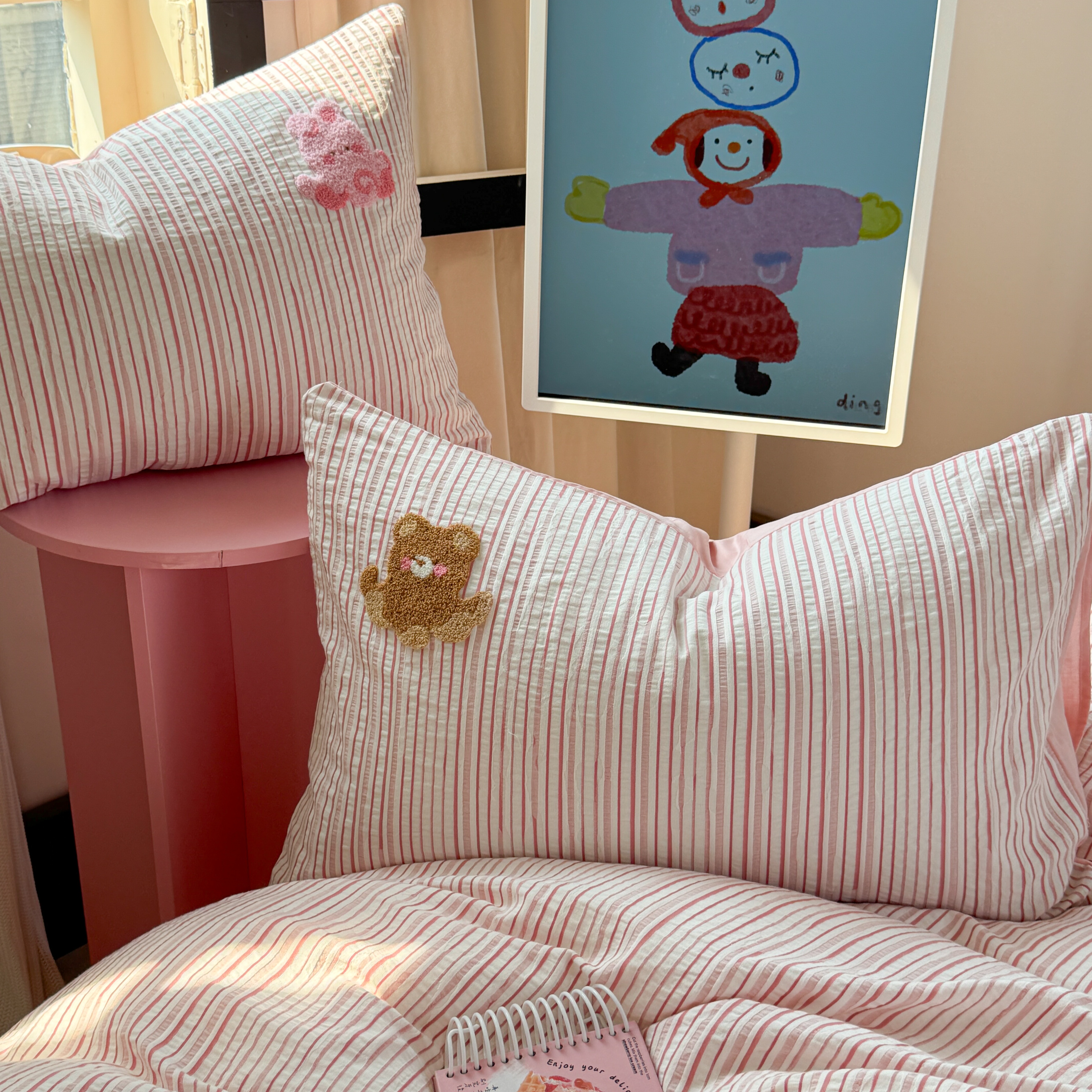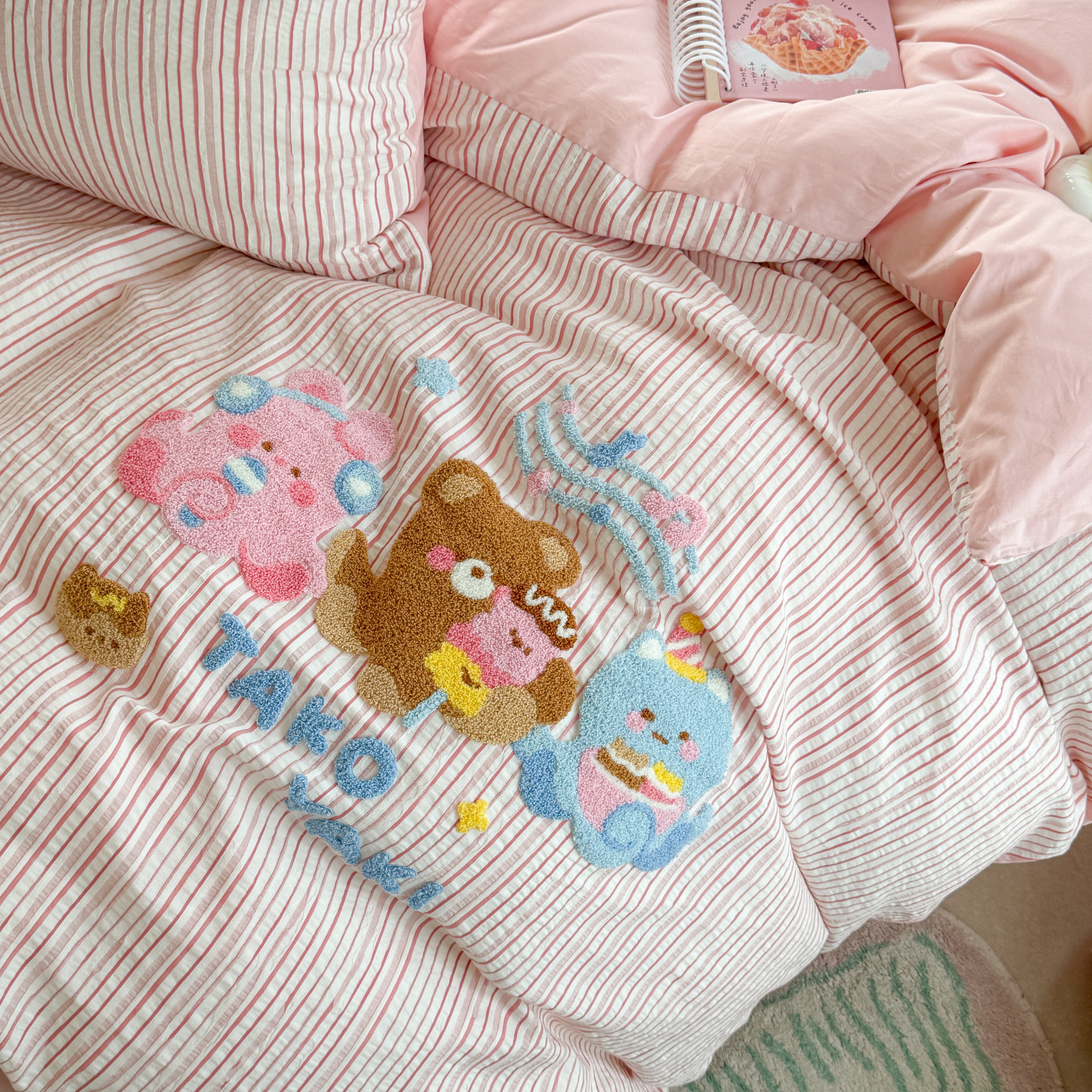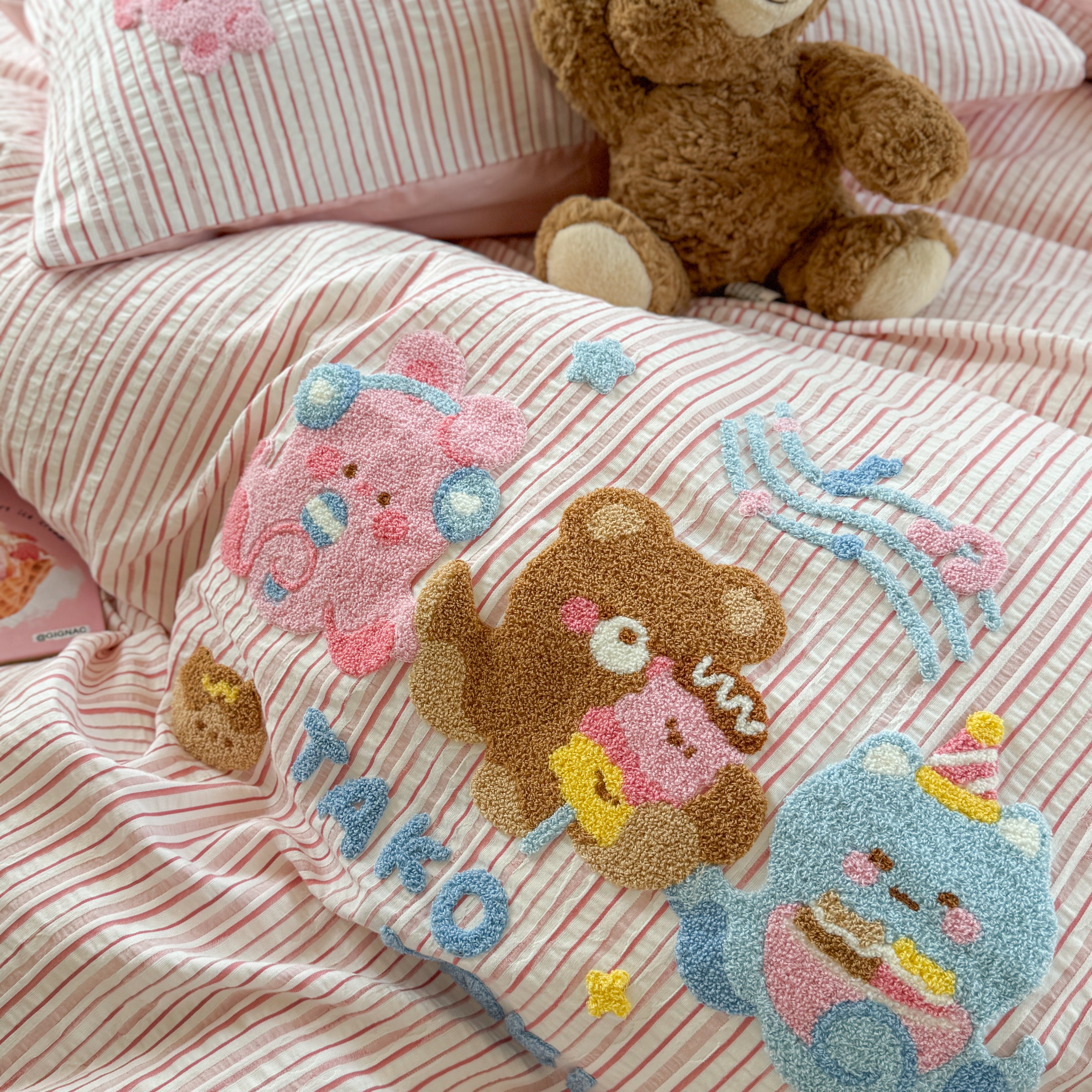 (总)柚子YOUTH 2025新款全棉双层纱贴布绣四件套,棒球熊猫,贝雷帽,冰淇淋小熊,格子玩偶,碎花小兔,小黑猫