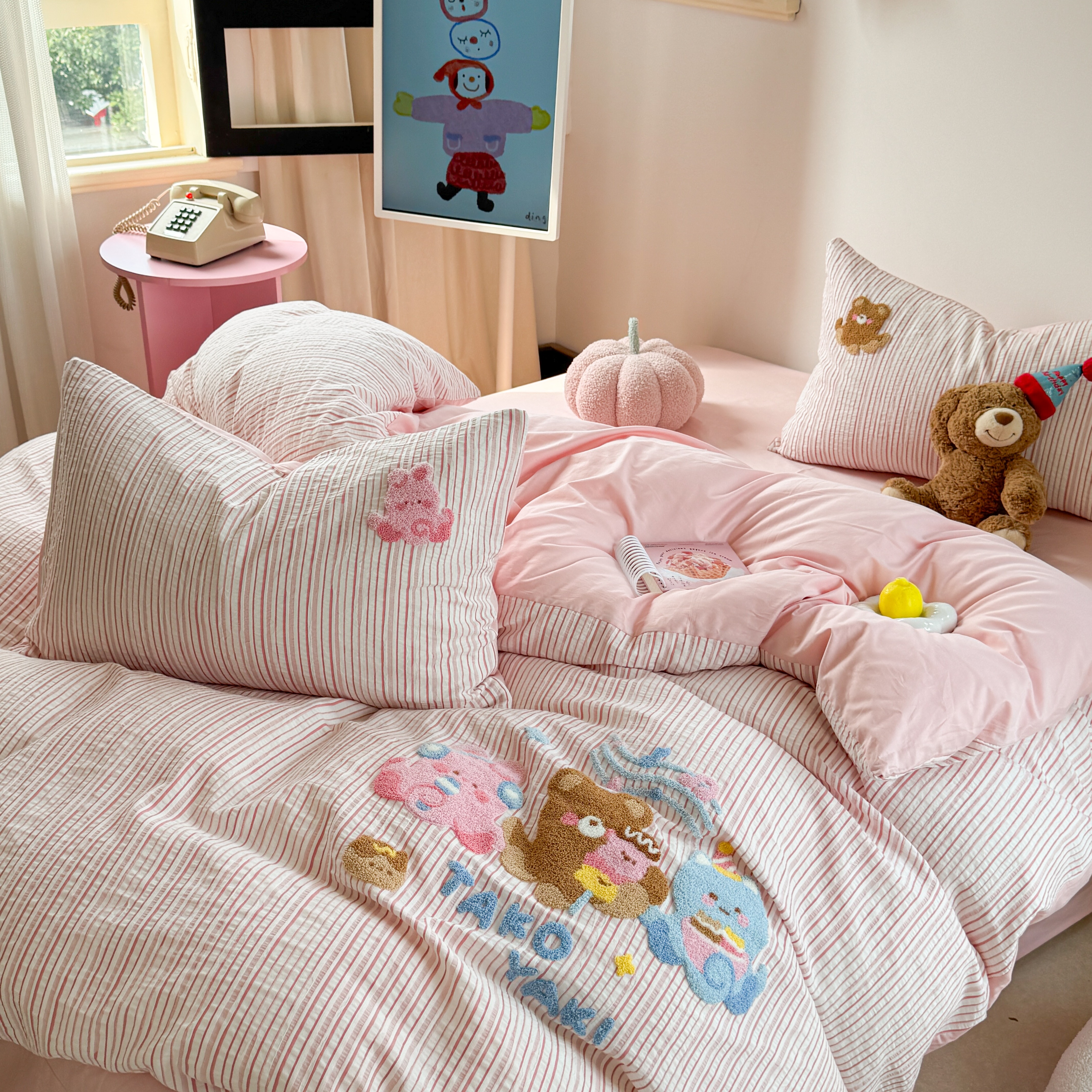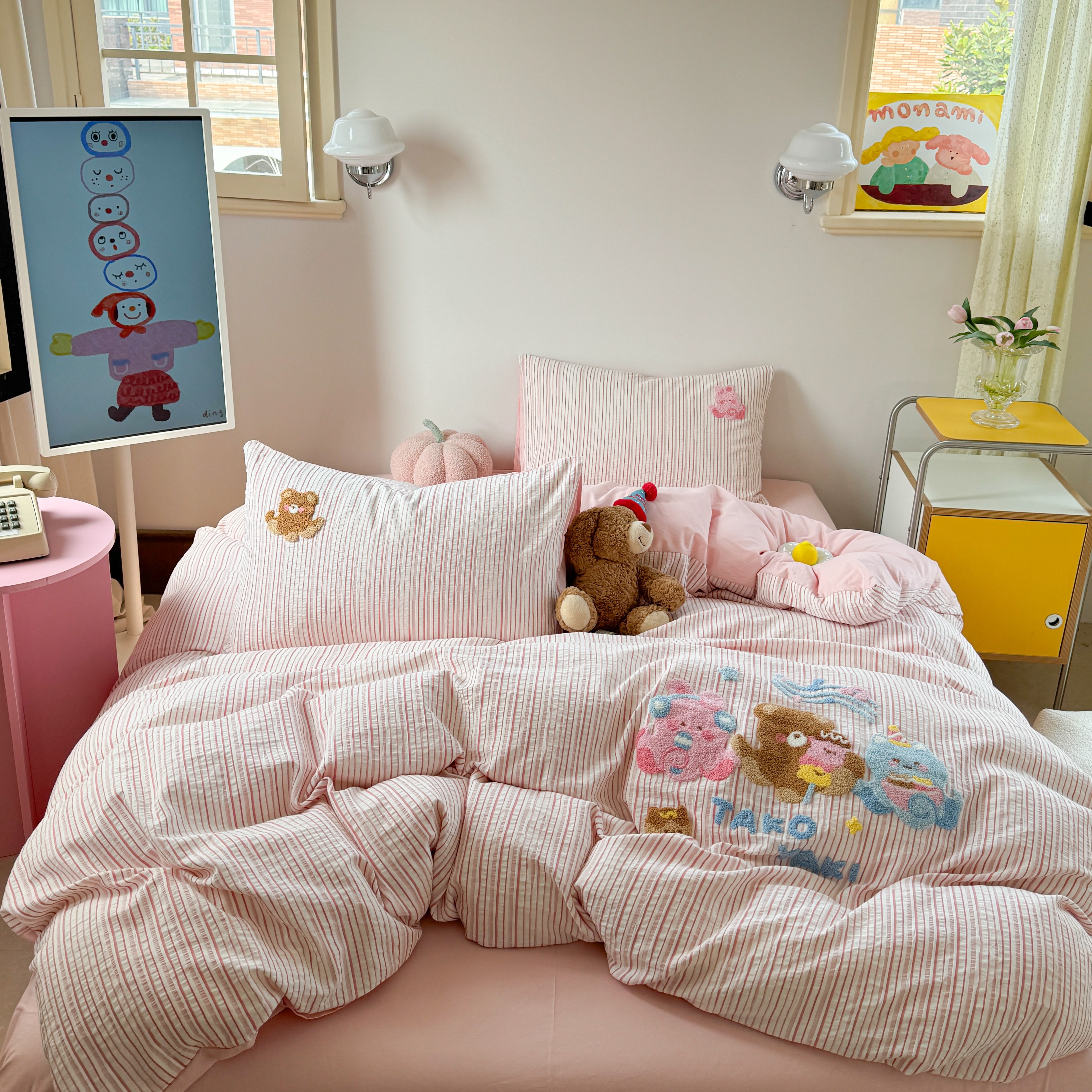 (总)柚子YOUTH 2026新款全棉纯棉水洗棉贴布绣四件套,蛋糕,树精灵,躺平猫,甜甜屋