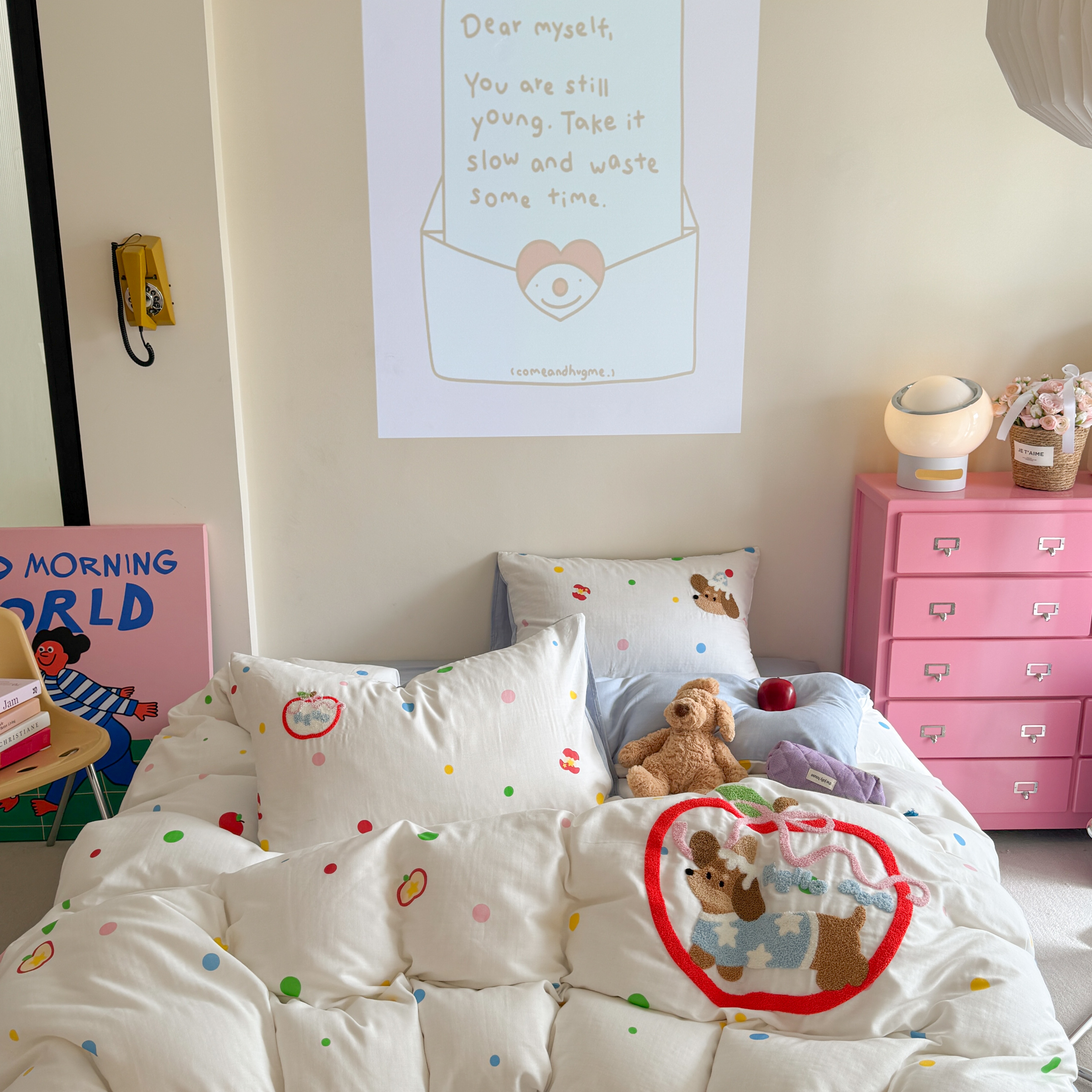 (总)柚子YOUTH 2025新款全棉纯棉工艺款13070贴布绣四件套,爱心小象,毛绒小狗,蘑菇女孩,星星法师