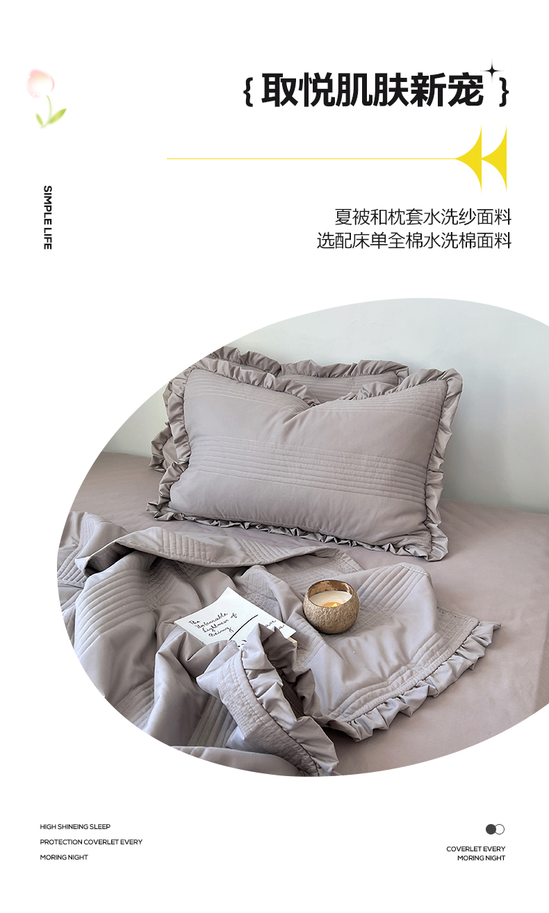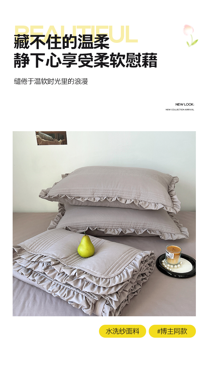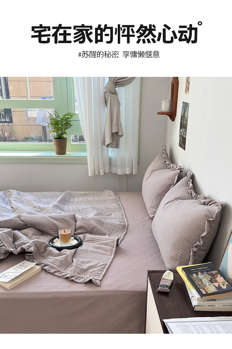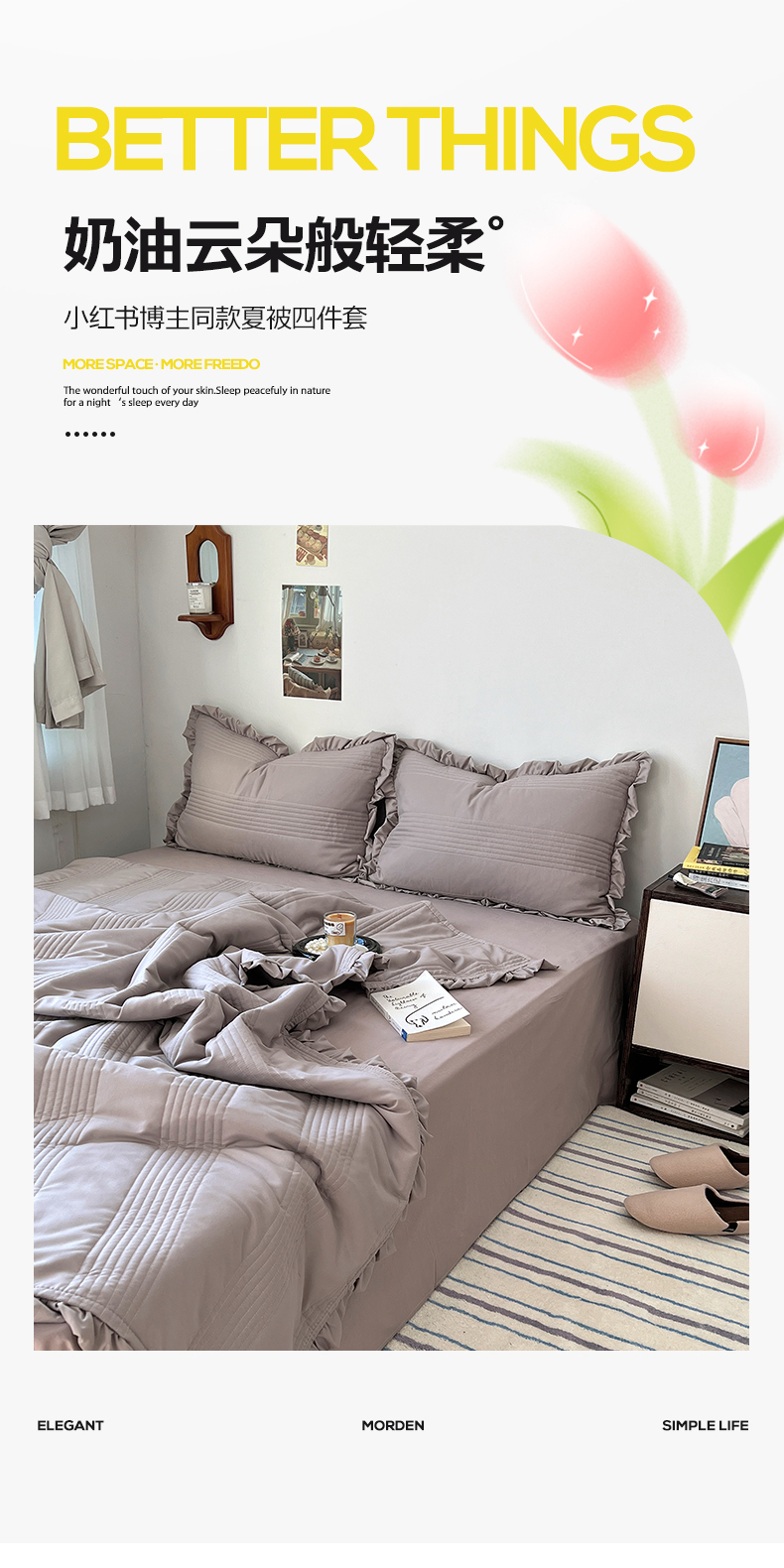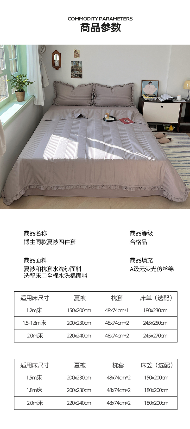 当前位置: 91家纺网 > 商品网购 > 床品套件 > 四件套 > 夏被四件套 > 六巷胡同 2025新款韩国INS博主同款绗缝水洗纱夏被四件套 迷雾灰