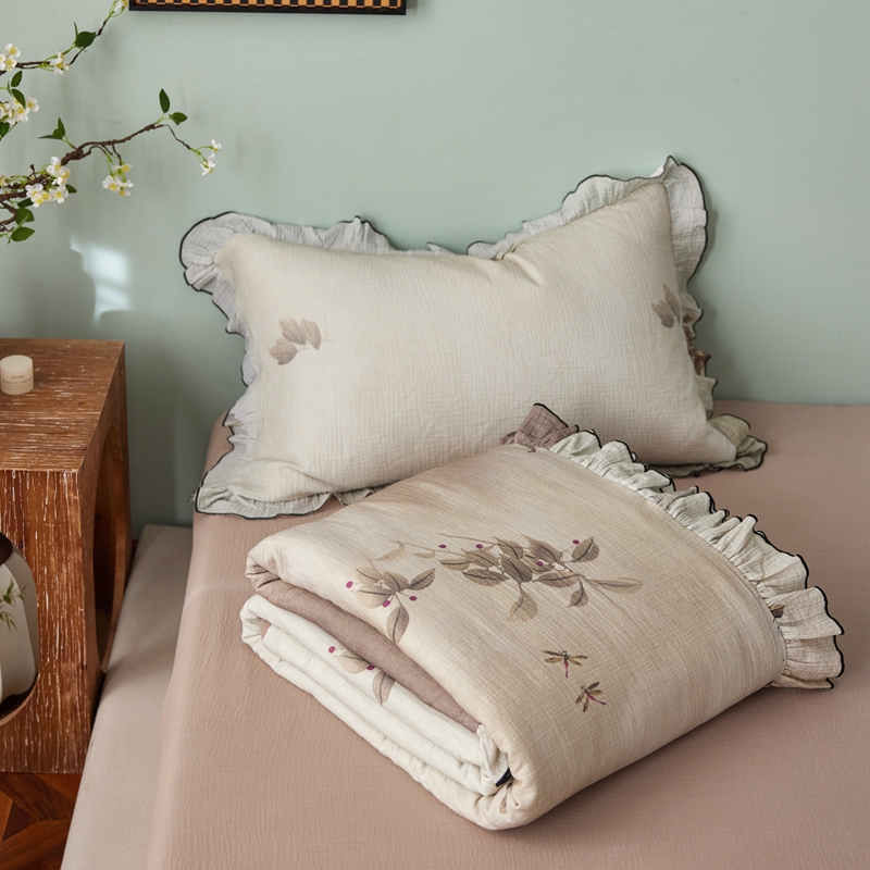 商品名称:安莱生活 2025新款全棉精梳棉双层纱绉纱数码印花夏凉被 烟雨江南-咖 夏被