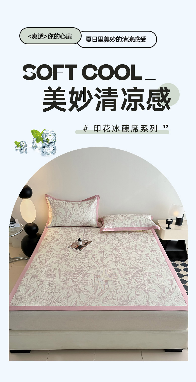 商品名称:(总)格真2025新款简约印花冰藤席席子凉席
