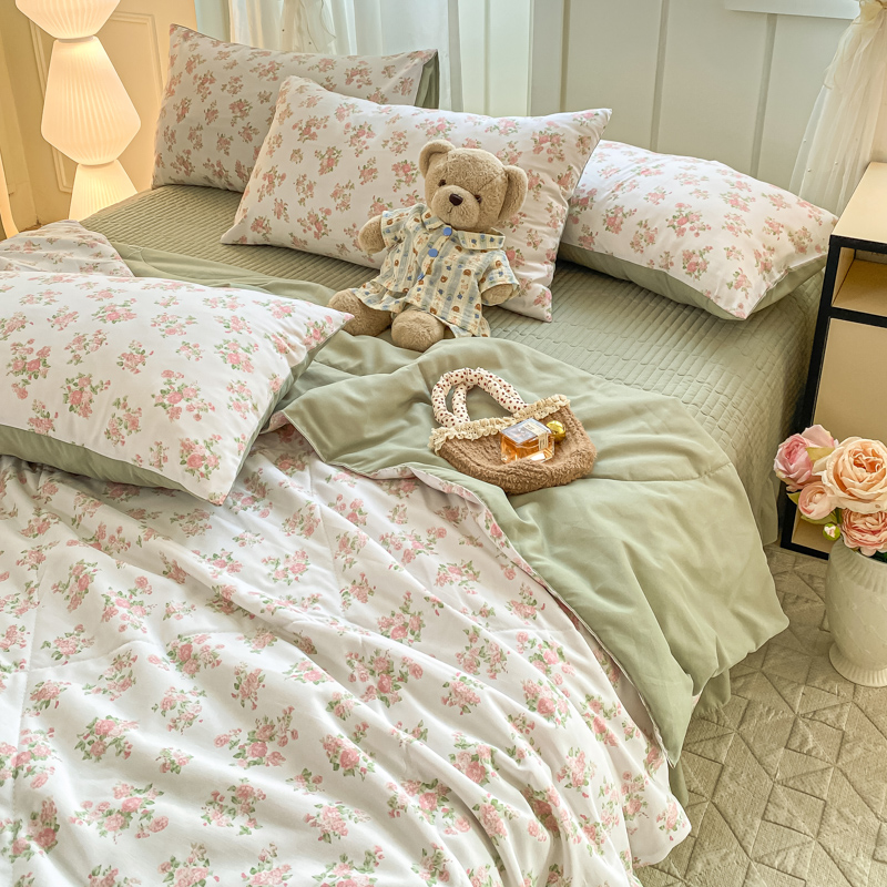商品名称:2025新款针织双层纱夏被床盖四件套单夏被单床盖单品 蔷薇之恋