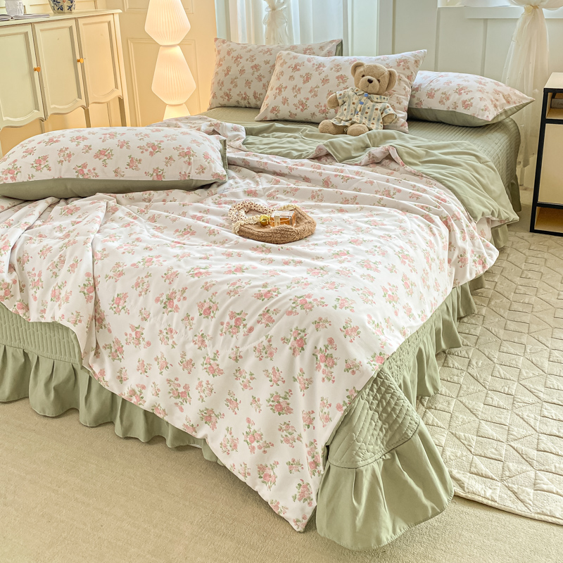 2025新款针织双层纱夏被床盖四件套单夏被单床盖单品 蔷薇之恋