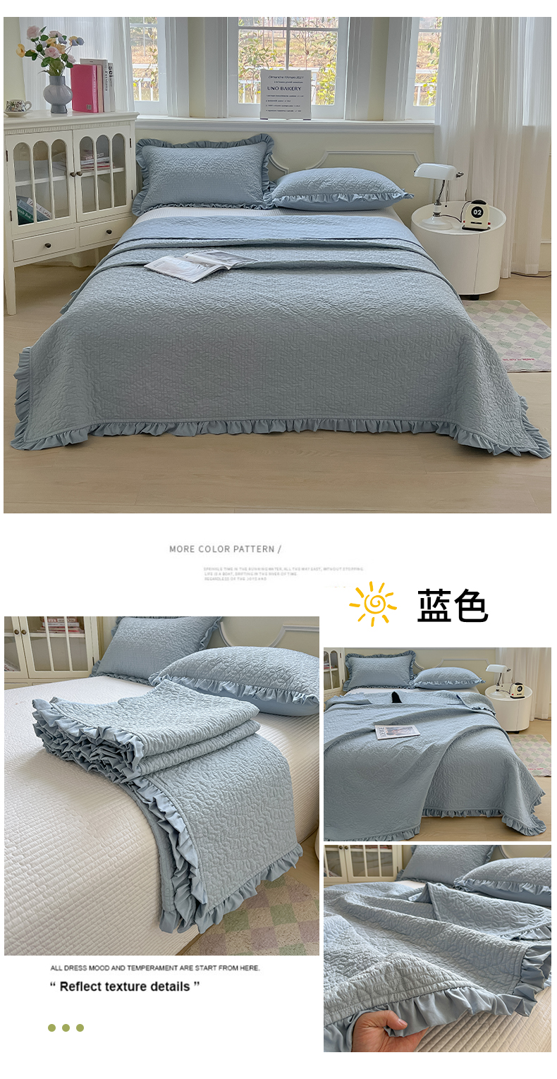 (总)乐卧家居 2026新款韩国INS风简约时尚绗缝荷叶边夏被,白色,粉色,黄色,灰色,蓝色,绿色,紫色,深紫