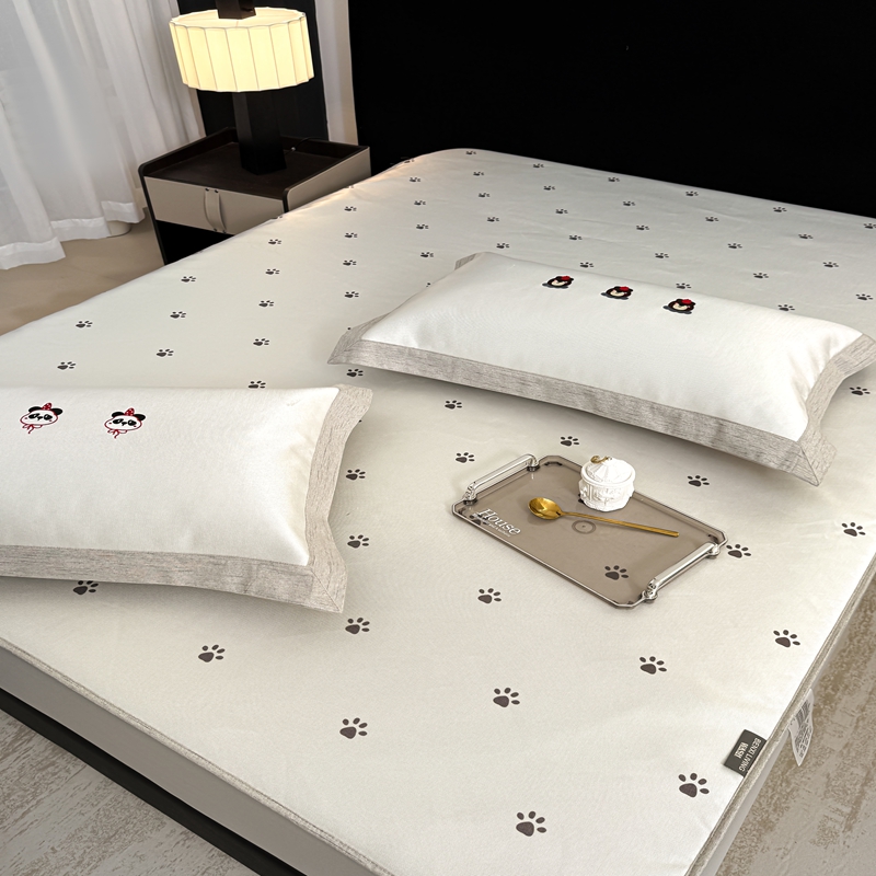 商品名称:木希2025春夏新款可水洗冰丝席幻彩刺绣床笠系列-场景二 脚丫刺绣