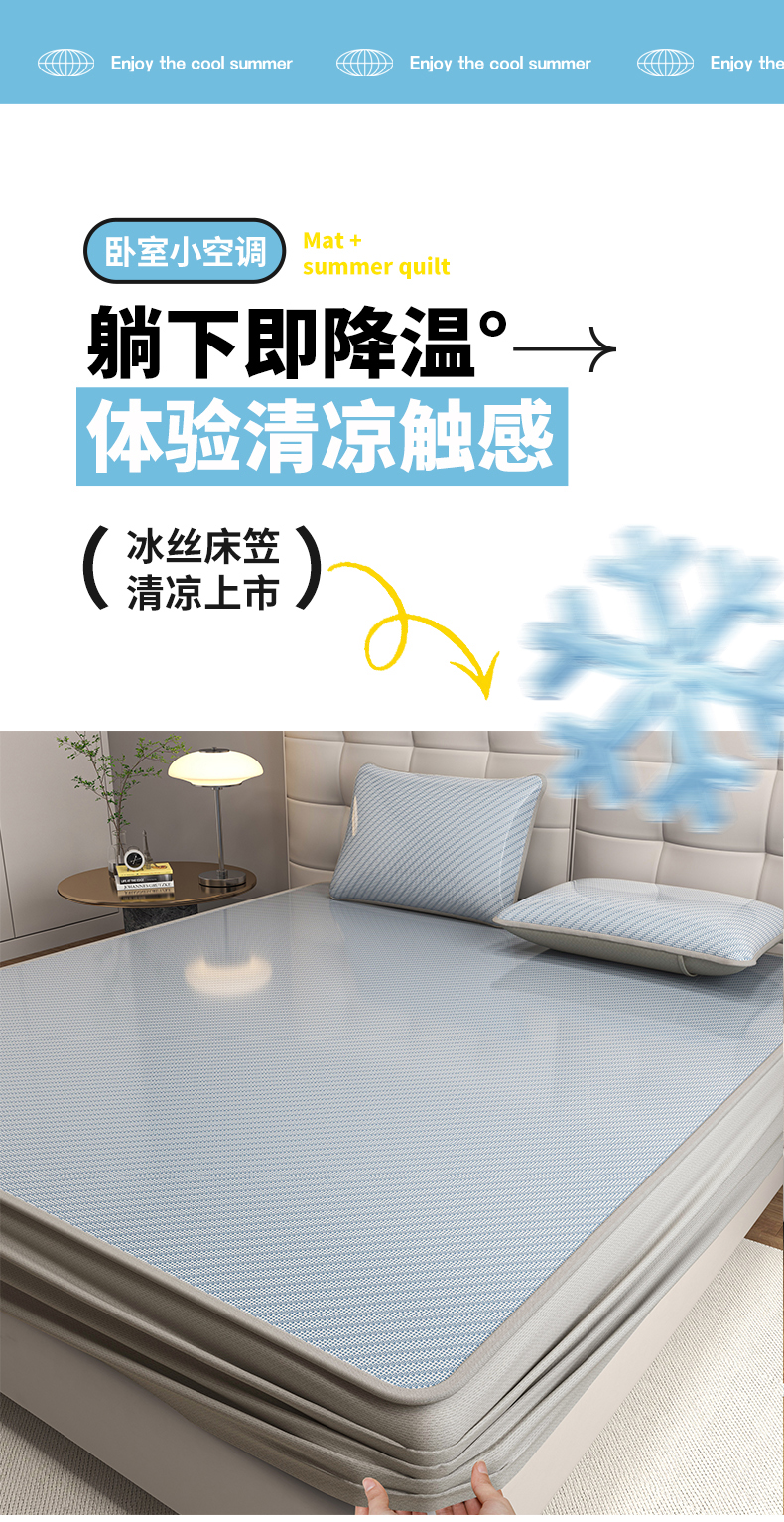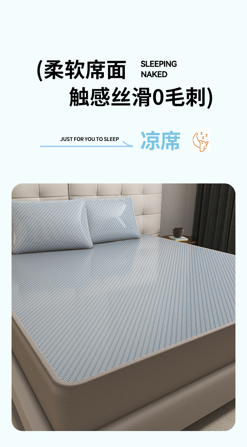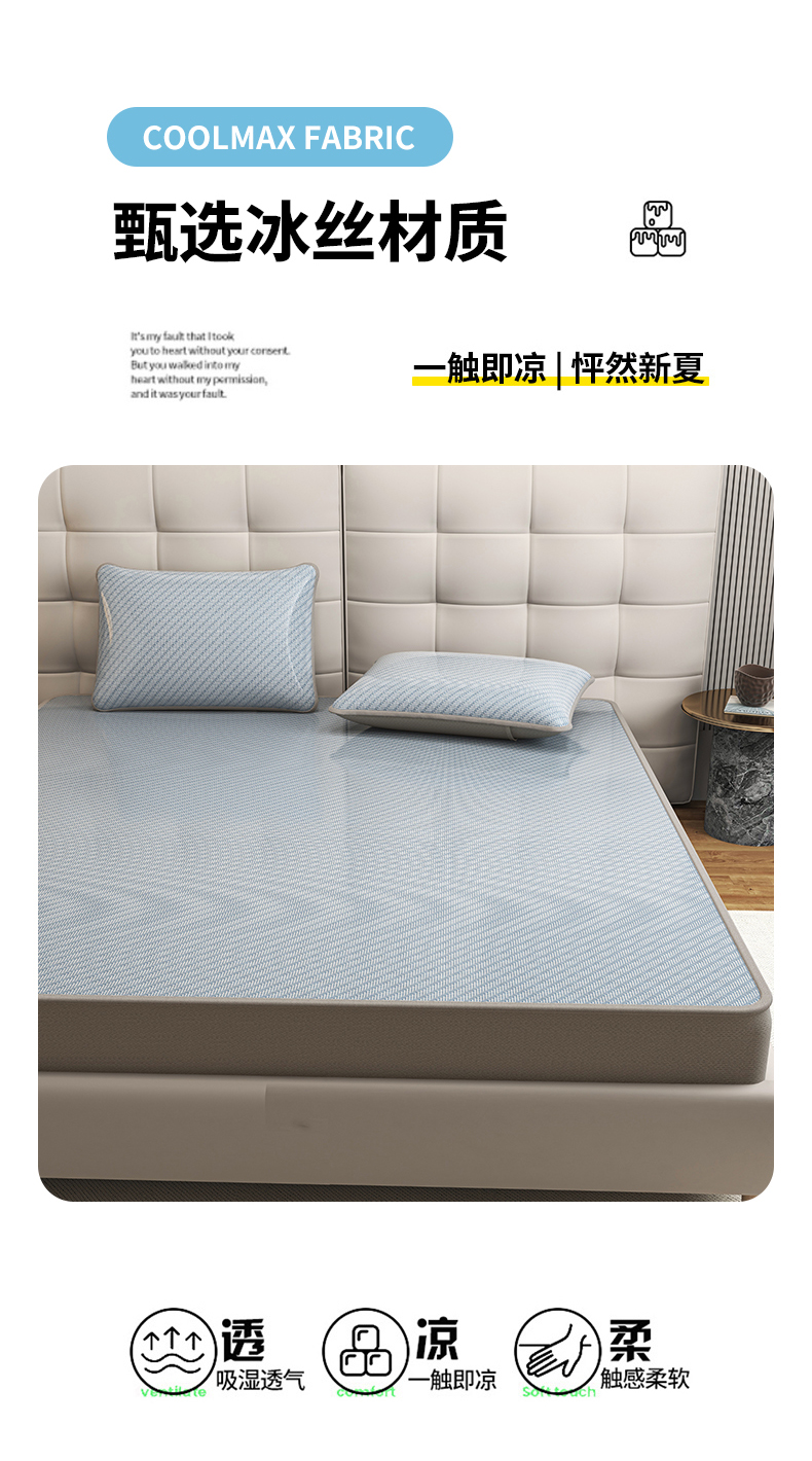 当前位置: 91家纺网 > 商品网购 > 床上用品 > 凉席 > 冰丝席 > 欧邦 2025春夏新款水某星同款斜纹提花冰丝席三件套 床笠款-水蓝