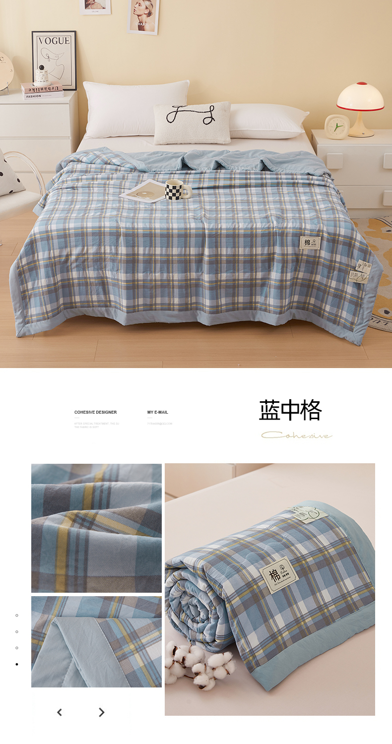 简冠家纺 2025新款水洗棉新疆棉花夏被 蓝中格