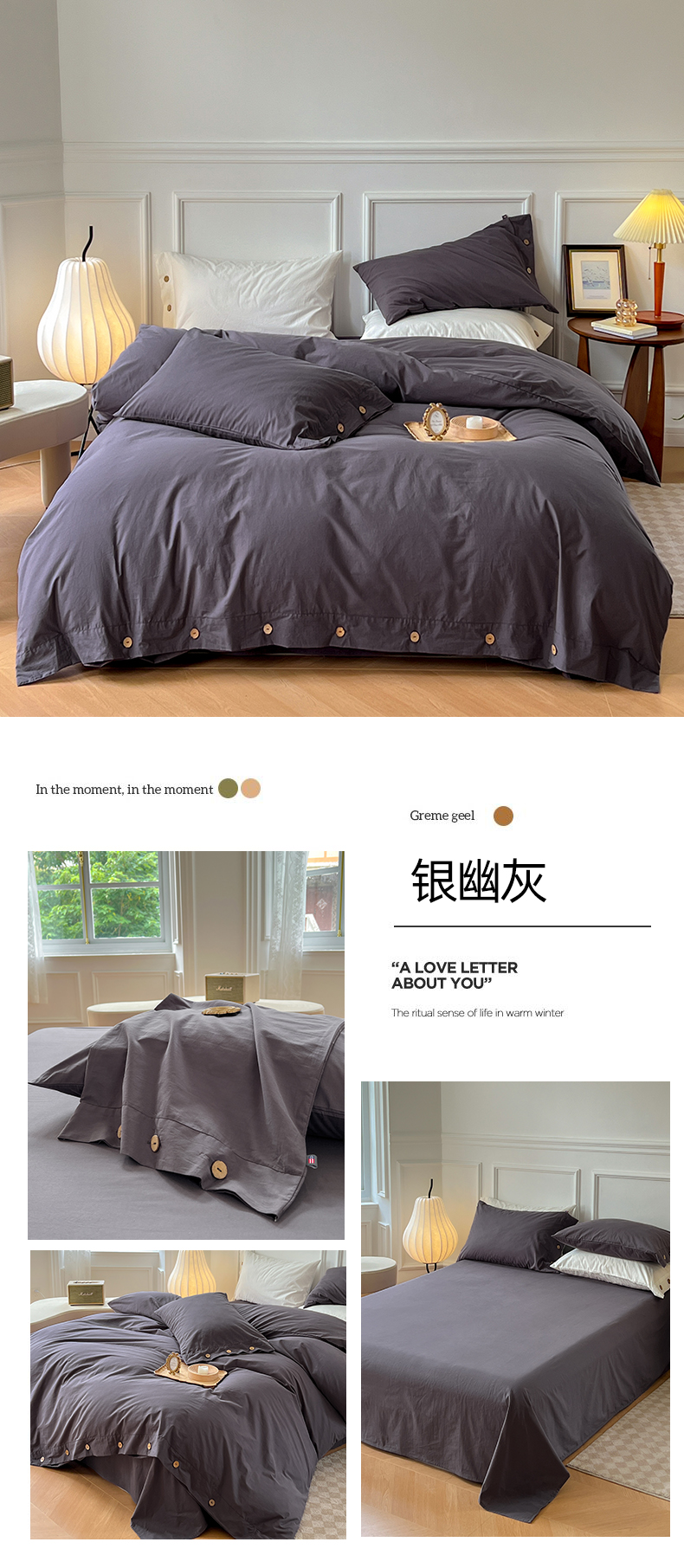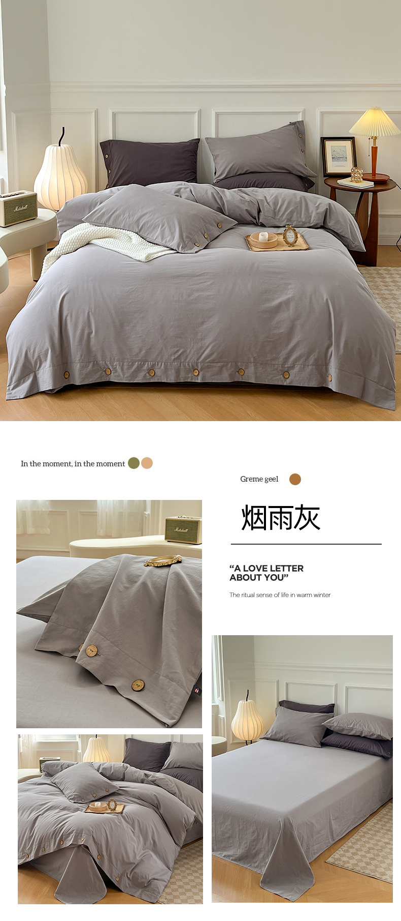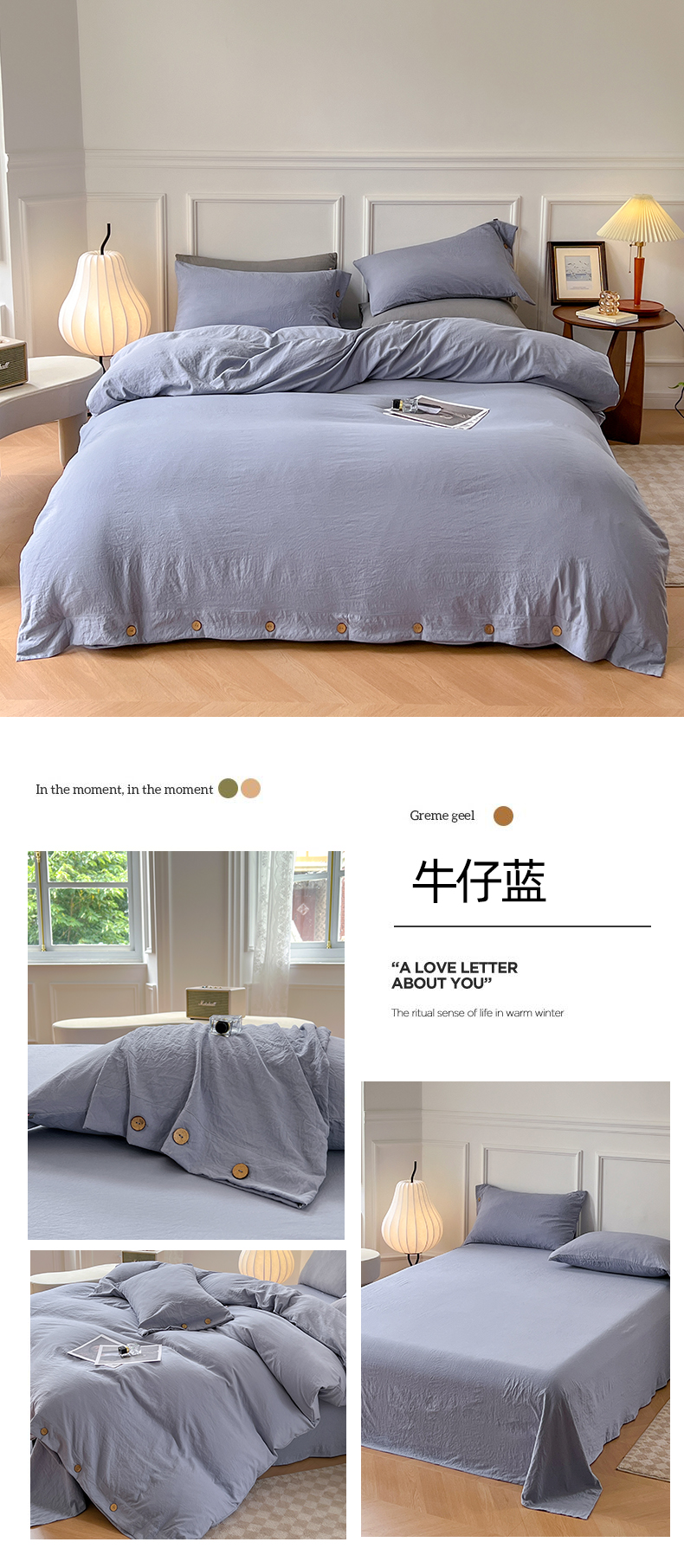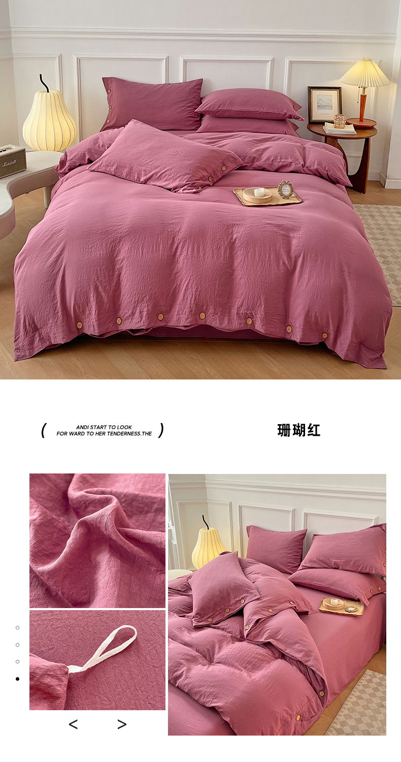 商品名称:(总)yyds网供 2025新款A类复古纽扣款四件套民宿高克重非全棉纯棉无印风日式水洗棉三件套[买家秀]