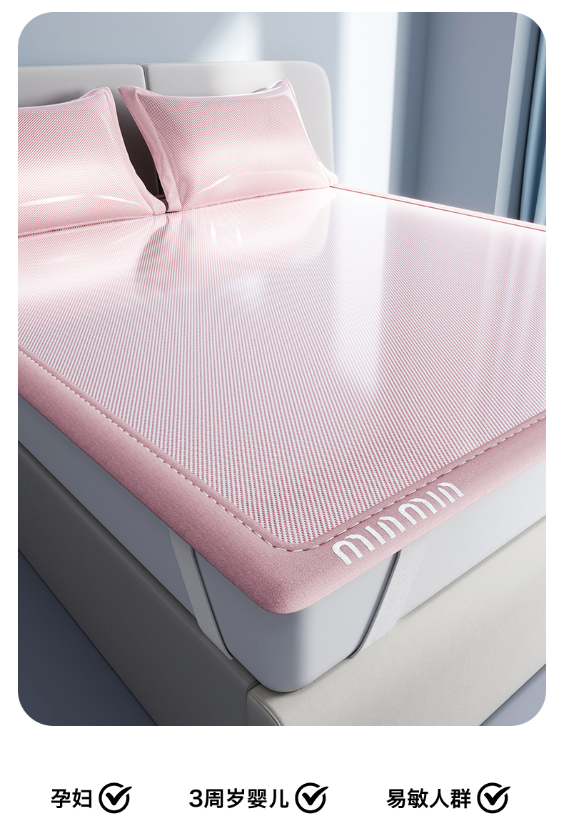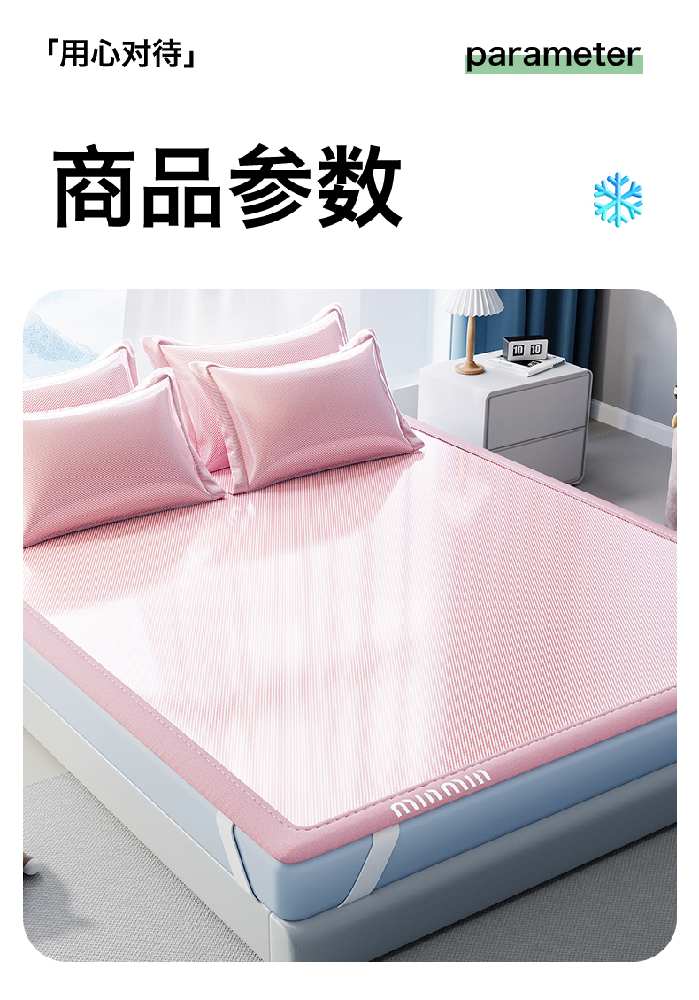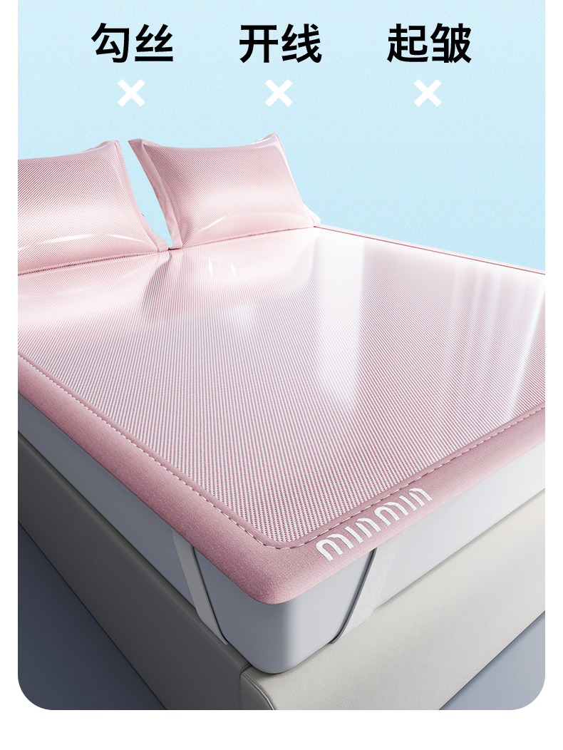商品名称:星座家纺 2025新款斜纹冰丝凉席三件套-绣花款 樱花粉