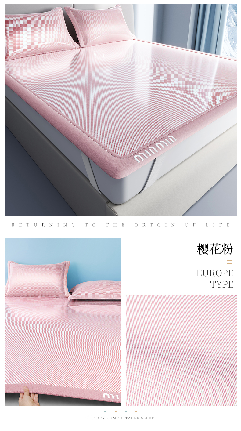 星座家纺 2025新款斜纹冰丝凉席三件套-绣花款 樱花粉
