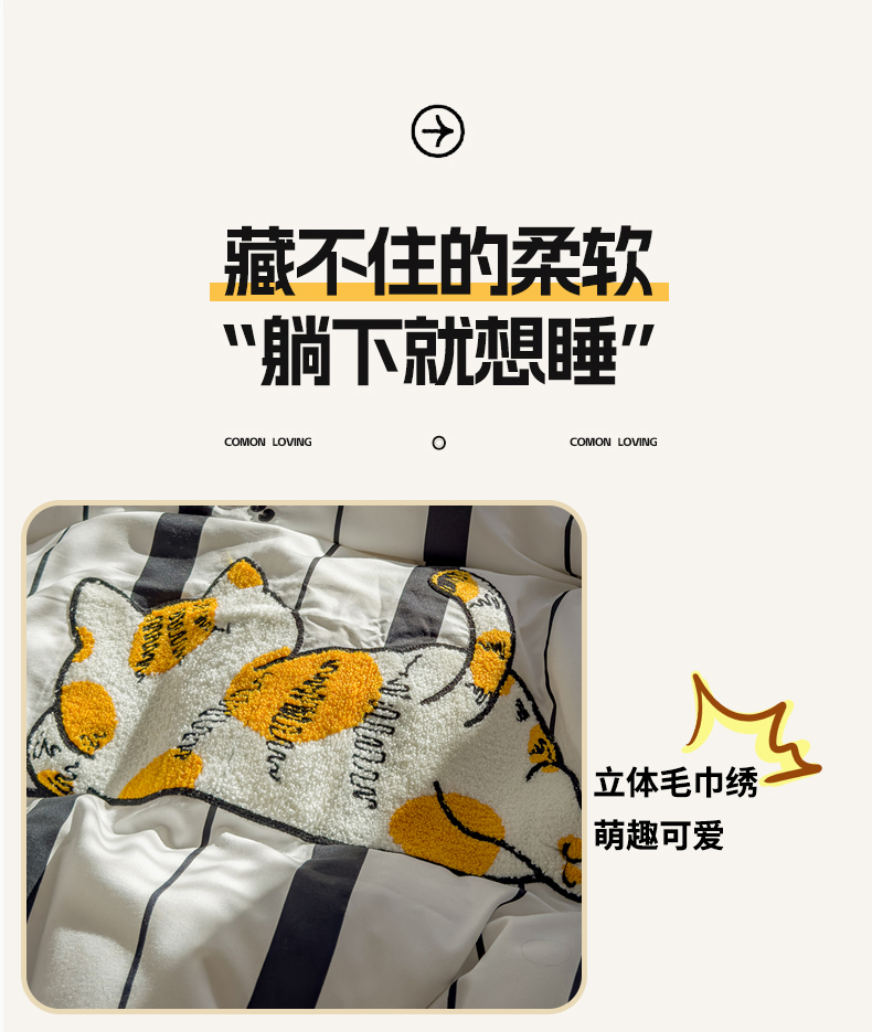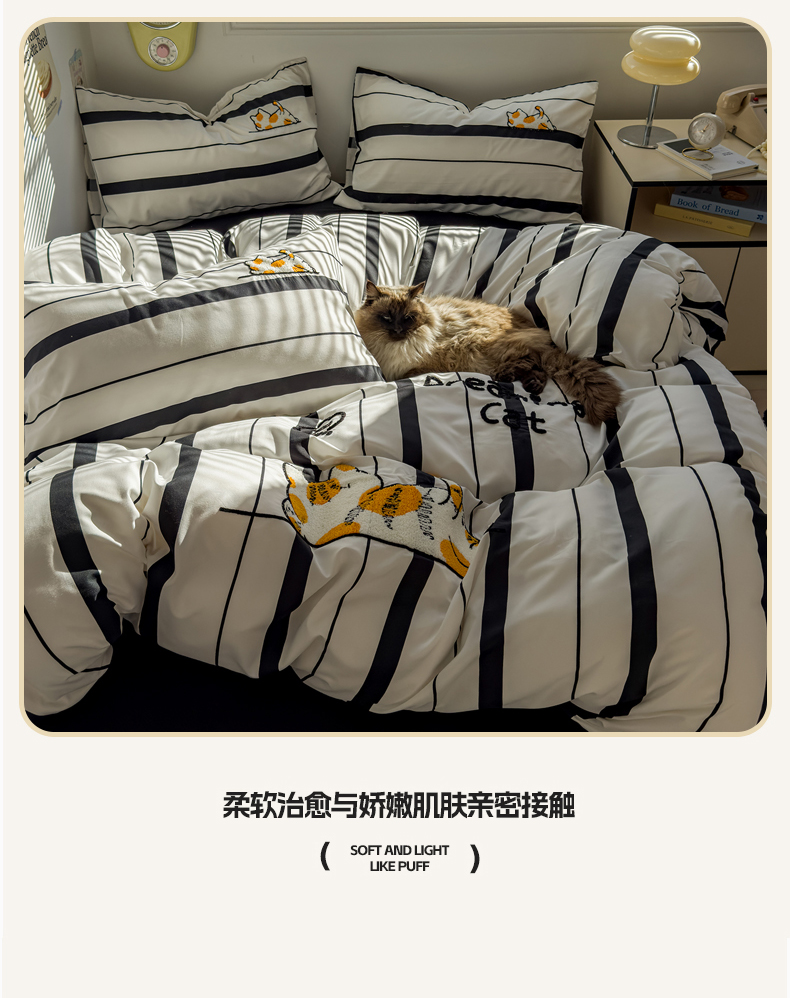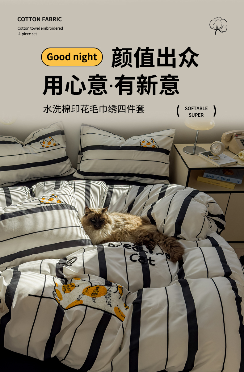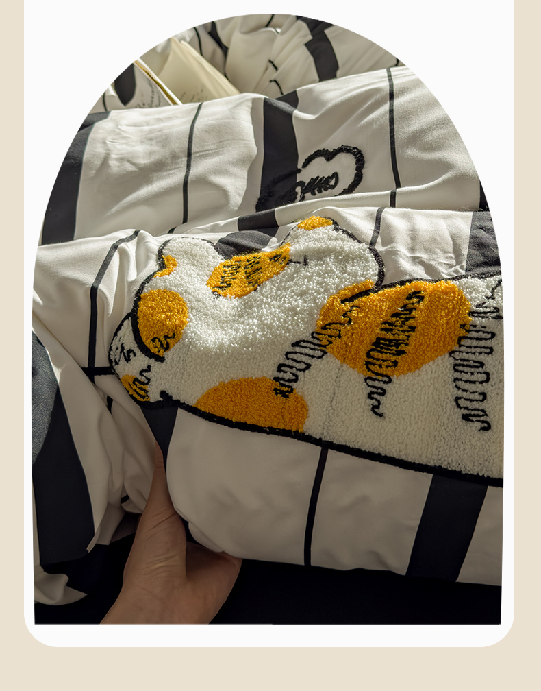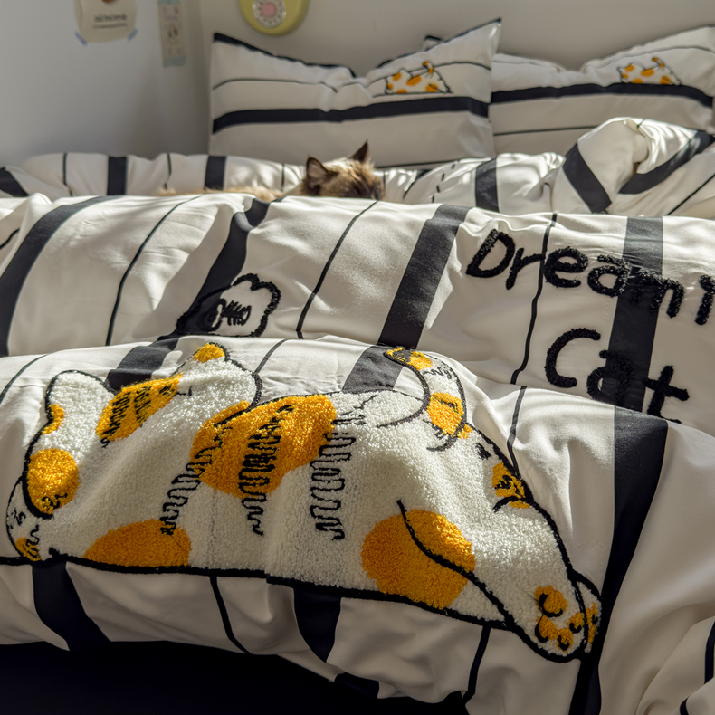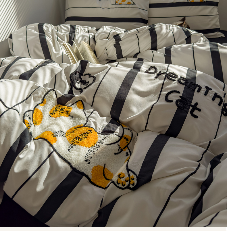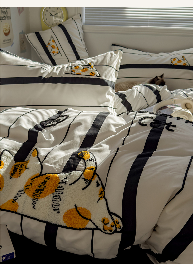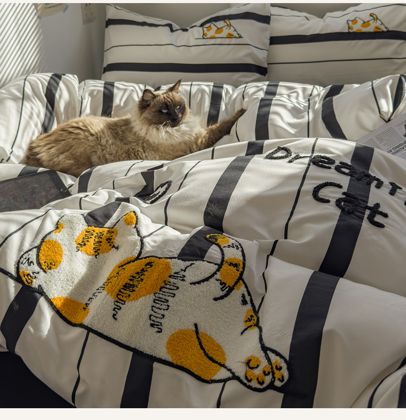 当前位置: 91家纺网 > 商品网购 > 床品套件 > 四件套 > 磨毛活性四件套 > 优兰朵 2025新款学生卡通水洗棉毛巾绣三件套床品四件套系列(提供买家秀) 橘猫-条纹黑