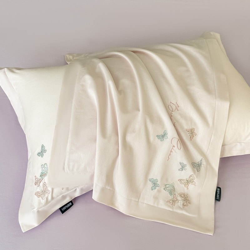 (总)小傻瓜家居 2025新款直播爆款百分百全棉蝴蝶系列四件套,恋蝶粉,恋蝶奶白粉