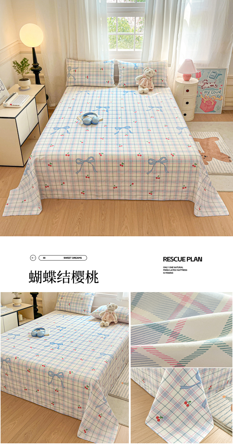 Sweet dreams甜梦 2025新款全棉纯棉小清新印花床单单品单床单床单单件 蝴蝶结樱桃