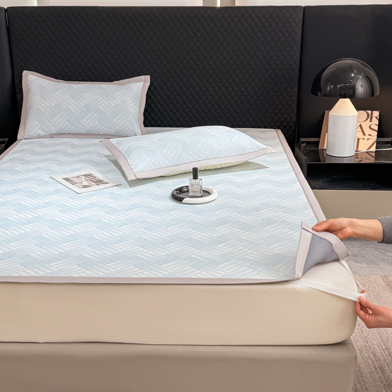 (总)小萌虎 2025新款冰豆豆凉席 床笠款,粉玉,果绿,灰色,咖色,浅蓝,深蓝
