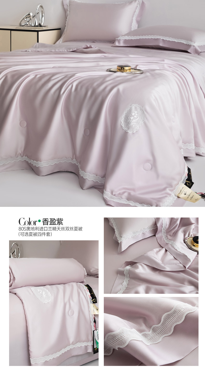 当前位置: 91家纺网 > 商品网购 > 被子 > 夏被 > 桂雅居2025新款80支进口莱赛尔双丝夏被-达芙妮 香盈紫