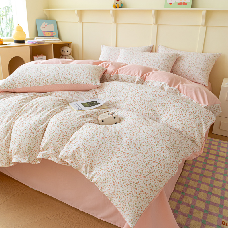 商品名称:南北家居 2025新款A类宝宝棉双层纱系列四件套-普通款 桃之夭夭