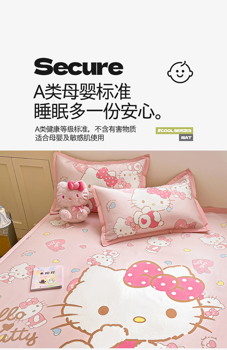 当前位置: 91家纺网 > 商品网购 > 床上用品 > 凉席 > 冰丝席 > 金爱家 2025新款A类三丽鸥授权数码印花中分子1200D凉感冰丝宽边凉感软席 冰丝席-美美kitty粉