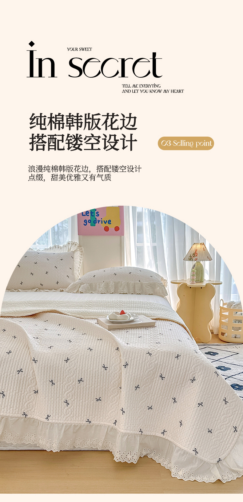 (总) 岚吉 2025新款40支133*72全棉斜纹夹棉绗缝小花边床盖,芳香,俏佳人,可可西里,少女心,条条小花,小樱桃,艾丽莎,爱莲娜,初遇-粉,浮绘花影,浆果小兔,律动-蓝,屁屁狗,乐橙,念雨诗-粉,盼盼,条纹律动,意礼,兰花草,烙印,紫葡萄,草绿,牛仔兰,浅兰,深粉,糖果咖,烟灰,安妮公主,草莓点点,凡尔赛,花田妙语,瑞丽-绿,田园小花,格子小熊,逃家小兔,西莉娅,蝶恋花,花枝小兔,蓝色小象,摩卡,木棉花,小苍蓝,紫罗兰