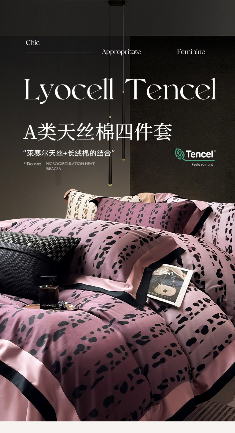 商品名称:爱妮菲2025夏季A类天丝棉夹棉床盖床笠四件套全棉纯棉纯色长绒棉真丝保护罩高级感全工艺床上用品 雨棠