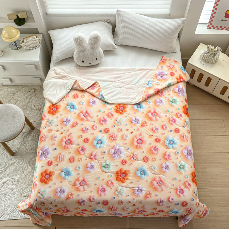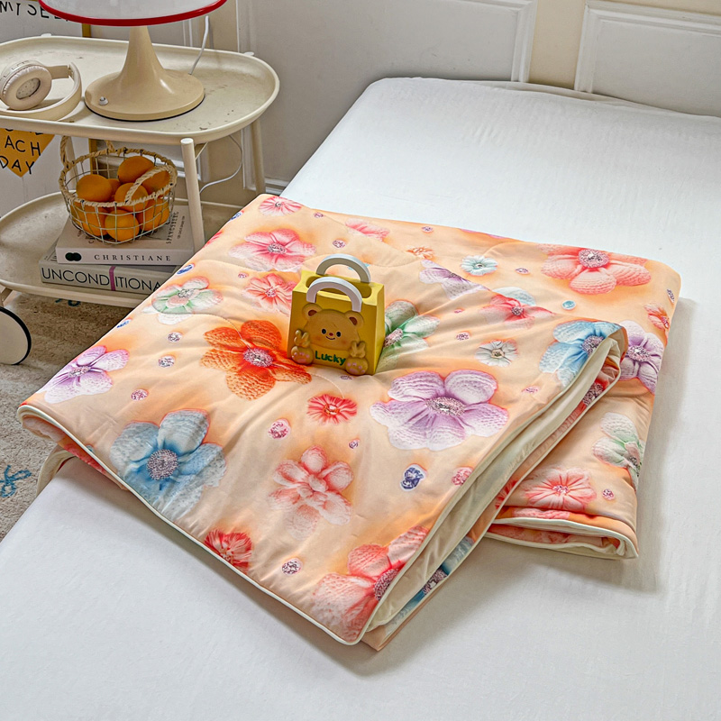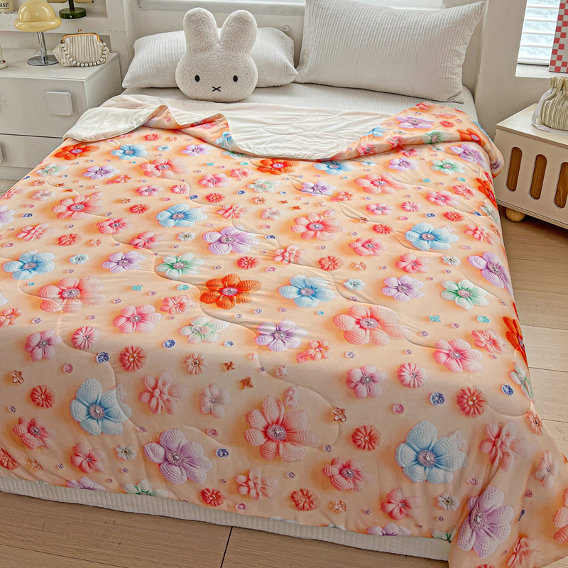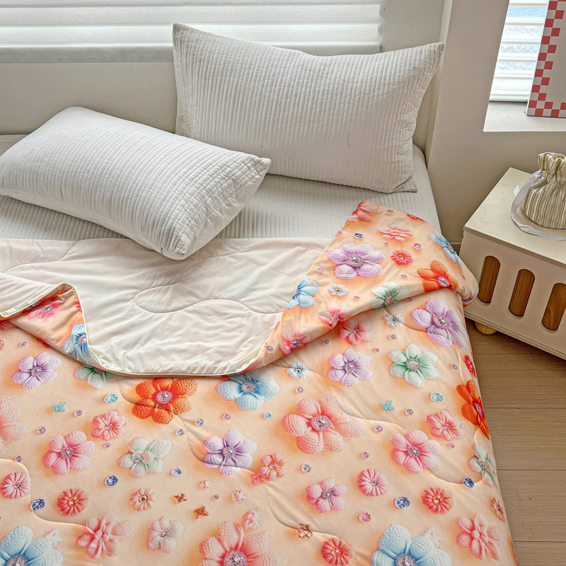 商品名称:庭彤 2025新款5D夏被空调被A类云母仿锦氨凉感丝夏凉被子被芯【 量大可谈】 5D数码浅夏花语