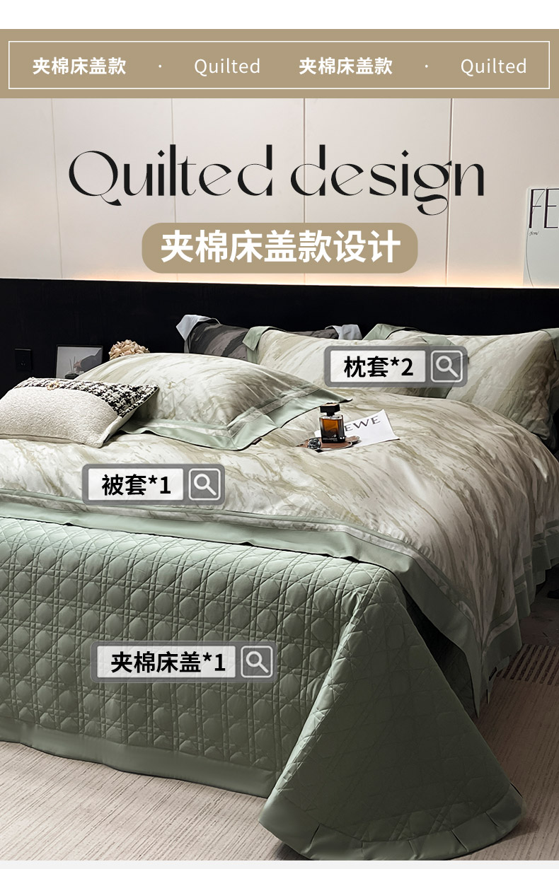 当前位置: 91家纺网 > 商品网购 > 床品套件 > 四件套 > 全棉普通四件套 > 2025新品A类100支天丝棉夹棉床盖床笠四件套全棉纯棉床单加厚高端数码印花长绒棉夏季轻奢真丝床上用品 布里奇-绿