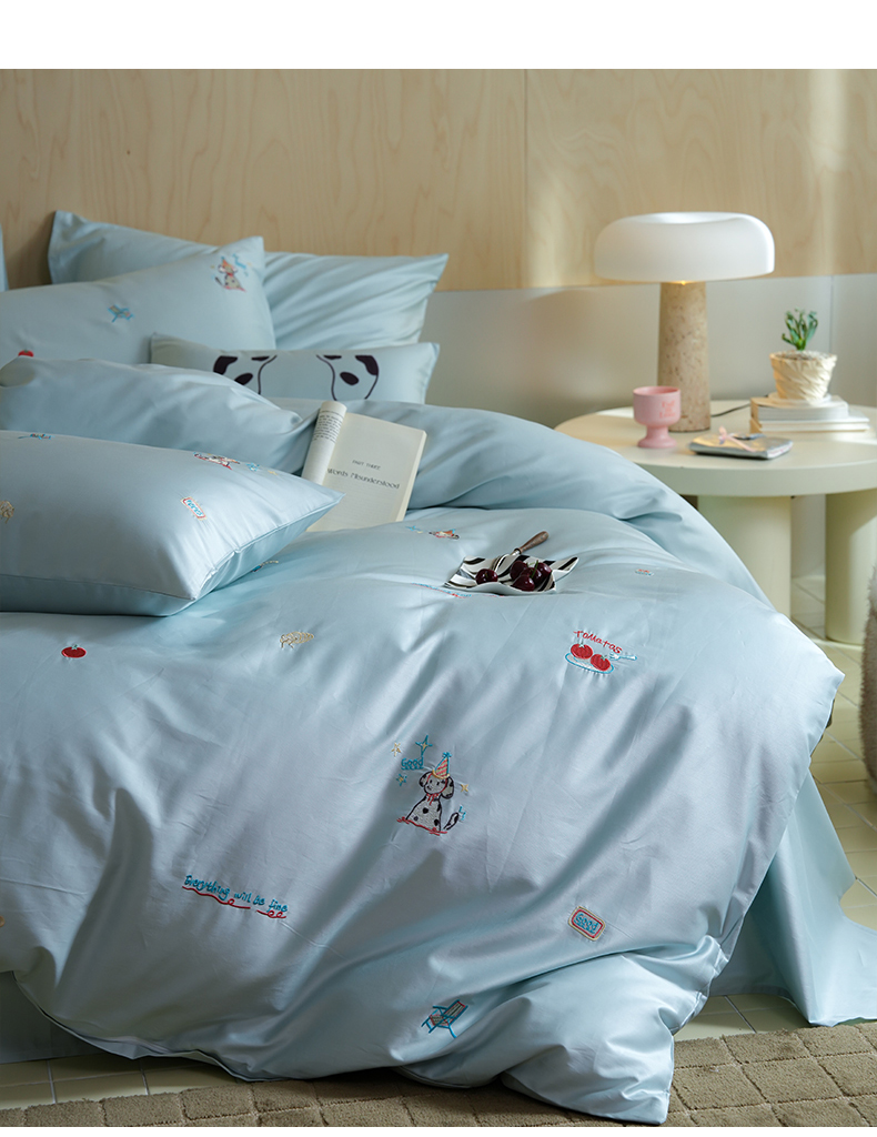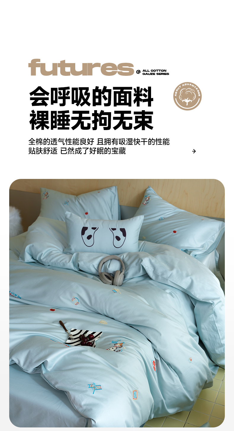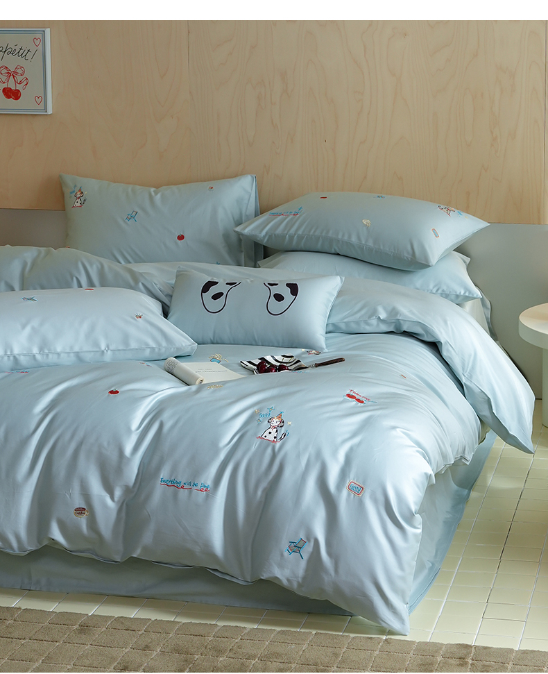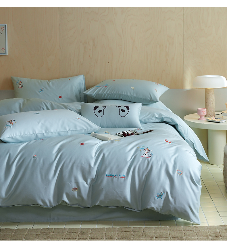 当前位置: 91家纺网 > 商品网购 > 床品套件 > 四件套 > 全棉普通四件套 > 简纯主义 2025新款A类趣味系列全棉长绒棉插画绣花四件套-露露米娅 露露米娅-蓝