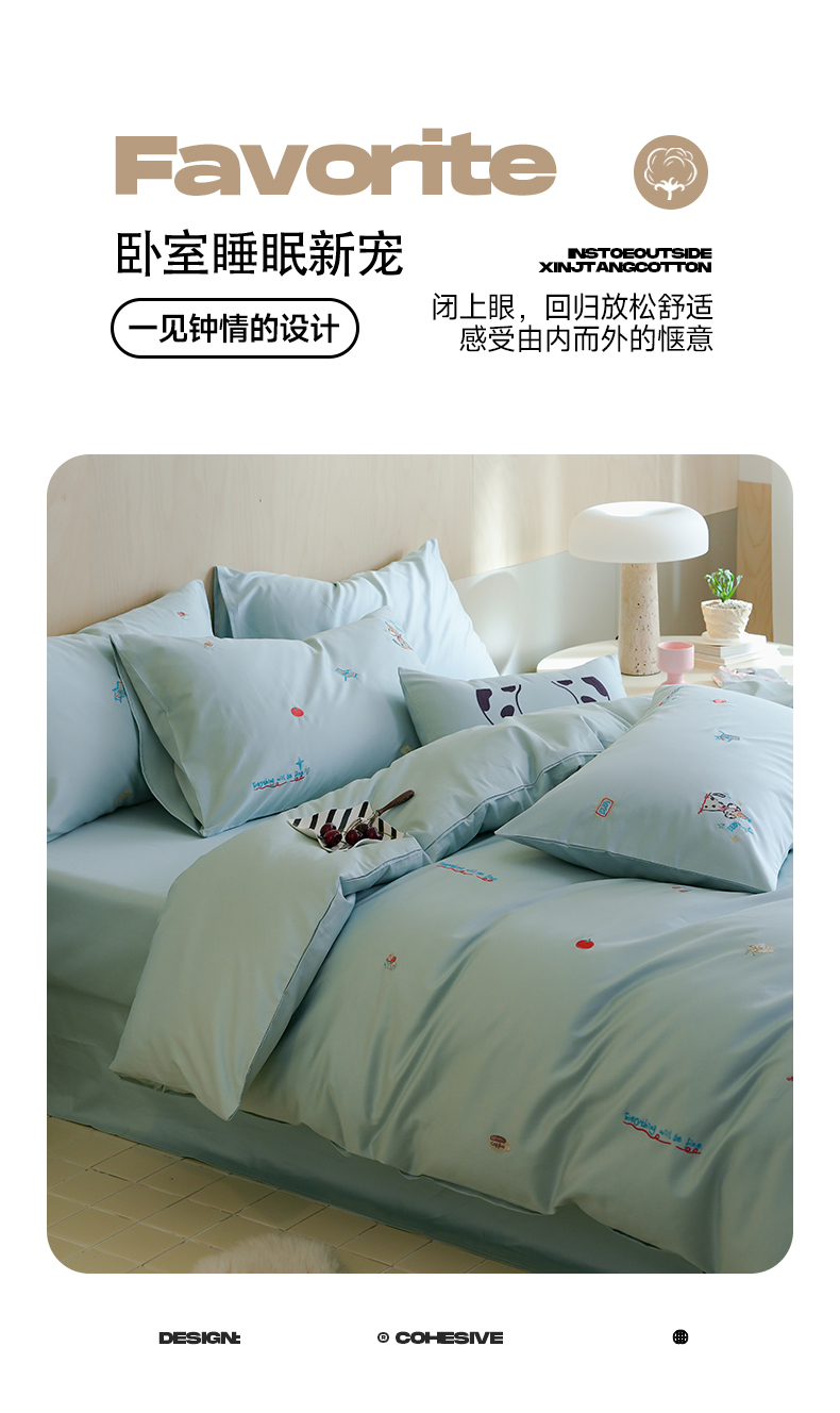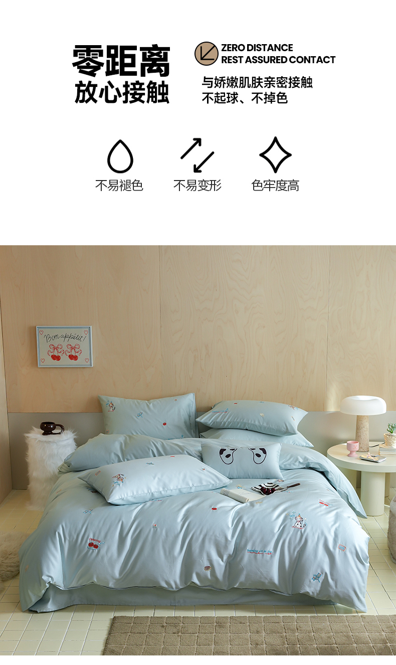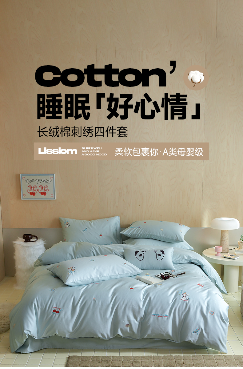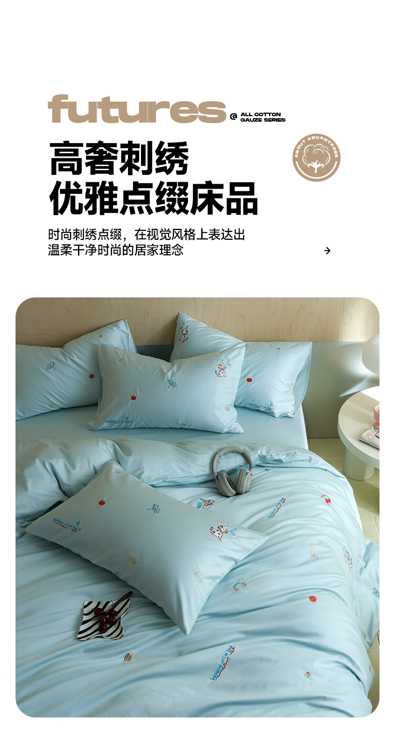 当前位置: 91家纺网 > 商品网购 > 床品套件 > 四件套 > 全棉普通四件套 > 简纯主义 2025新款A类趣味系列全棉长绒棉插画绣花四件套-露露米娅 露露米娅-蓝