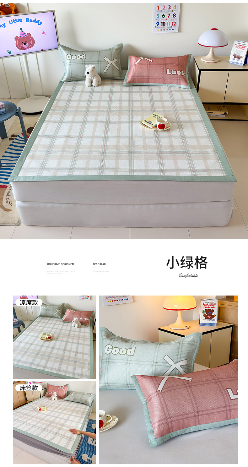 商品名称:安哆啦家纺 2025新款A类印花冰藤凉席简约条格系列凉席席子 马赛克-床笠款