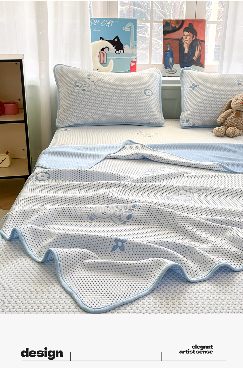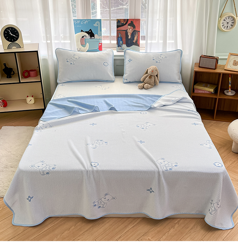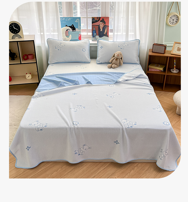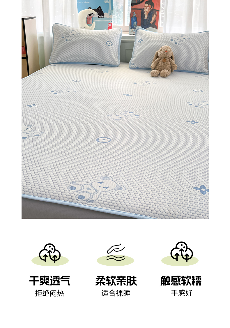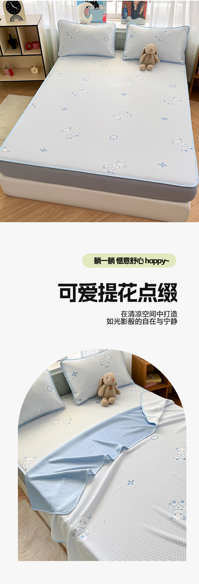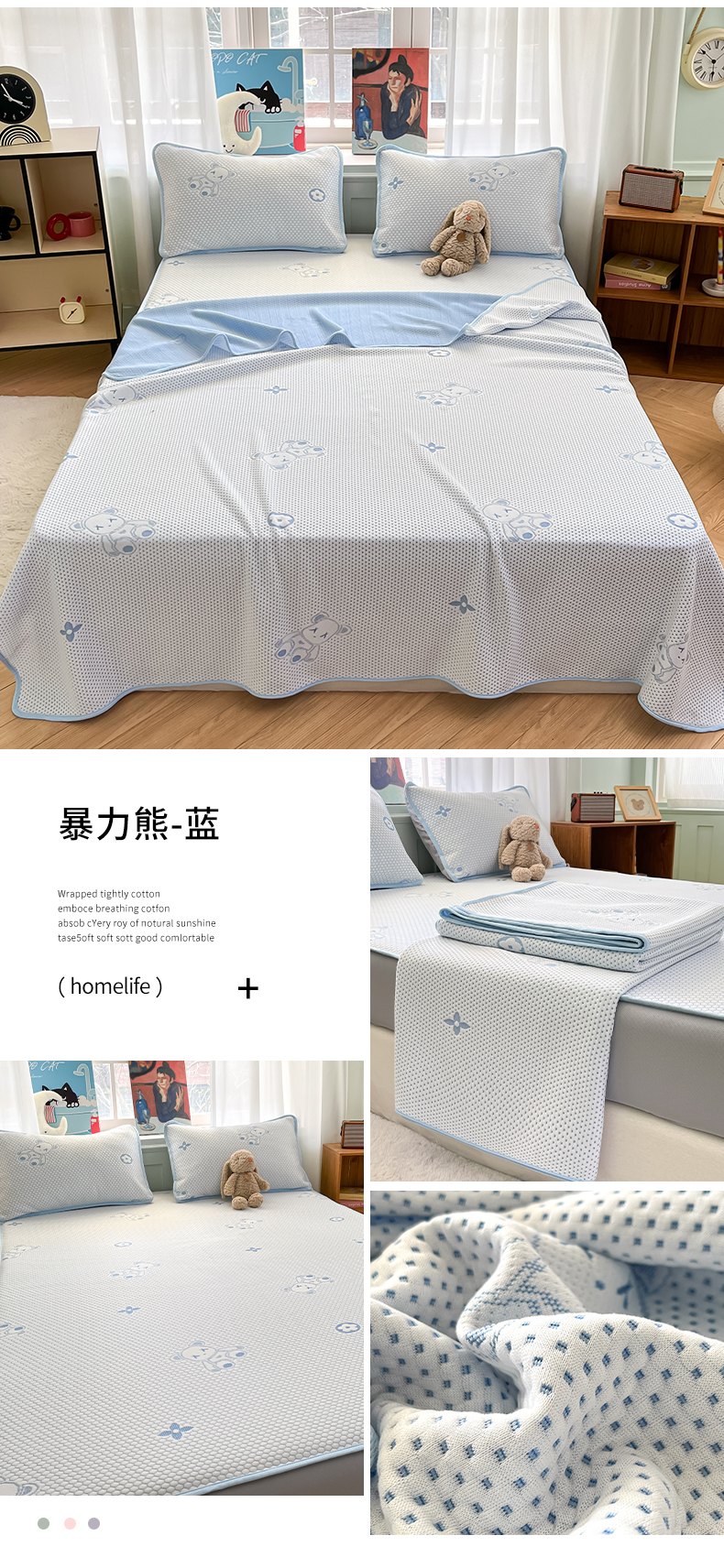 绘萱家居 2025爆款冰凉豆豆凉席夏被四件套三件套床笠款冰丝软席子 暴力熊-蓝