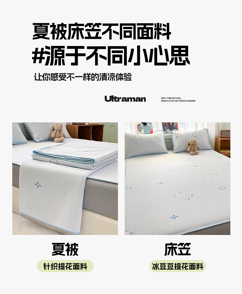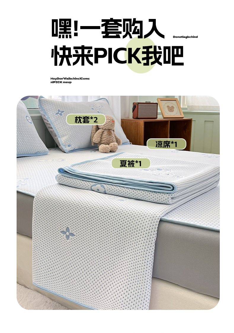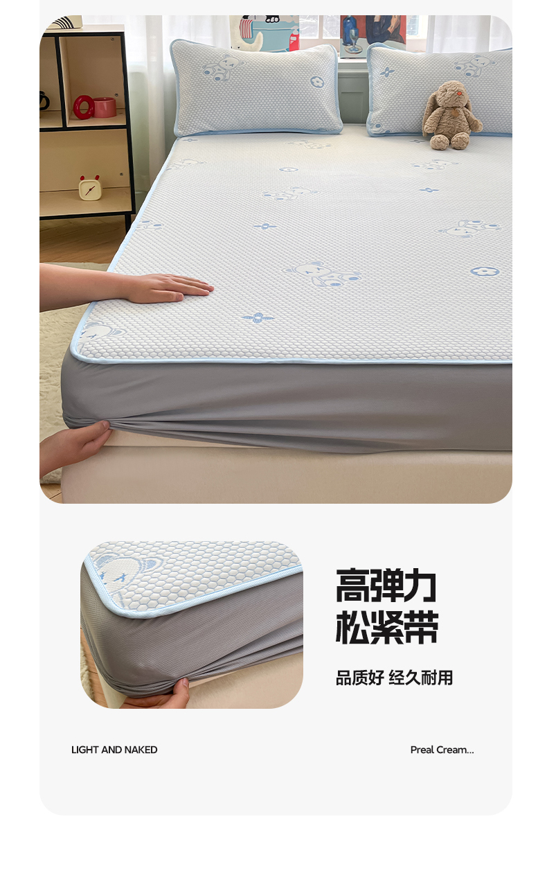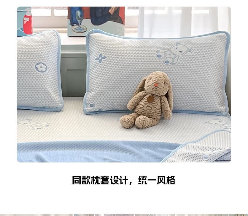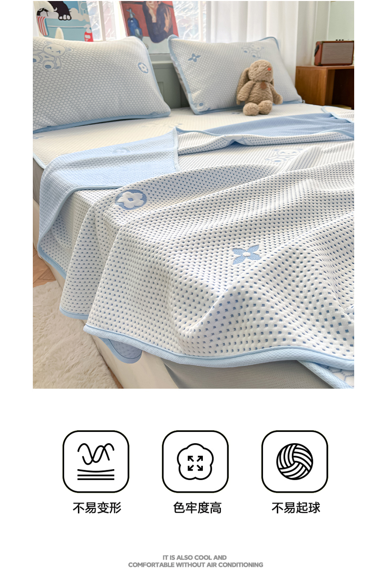 商品名称:绘萱家居 2025爆款冰凉豆豆凉席夏被四件套三件套床笠款冰丝软席子 暴力熊-蓝
