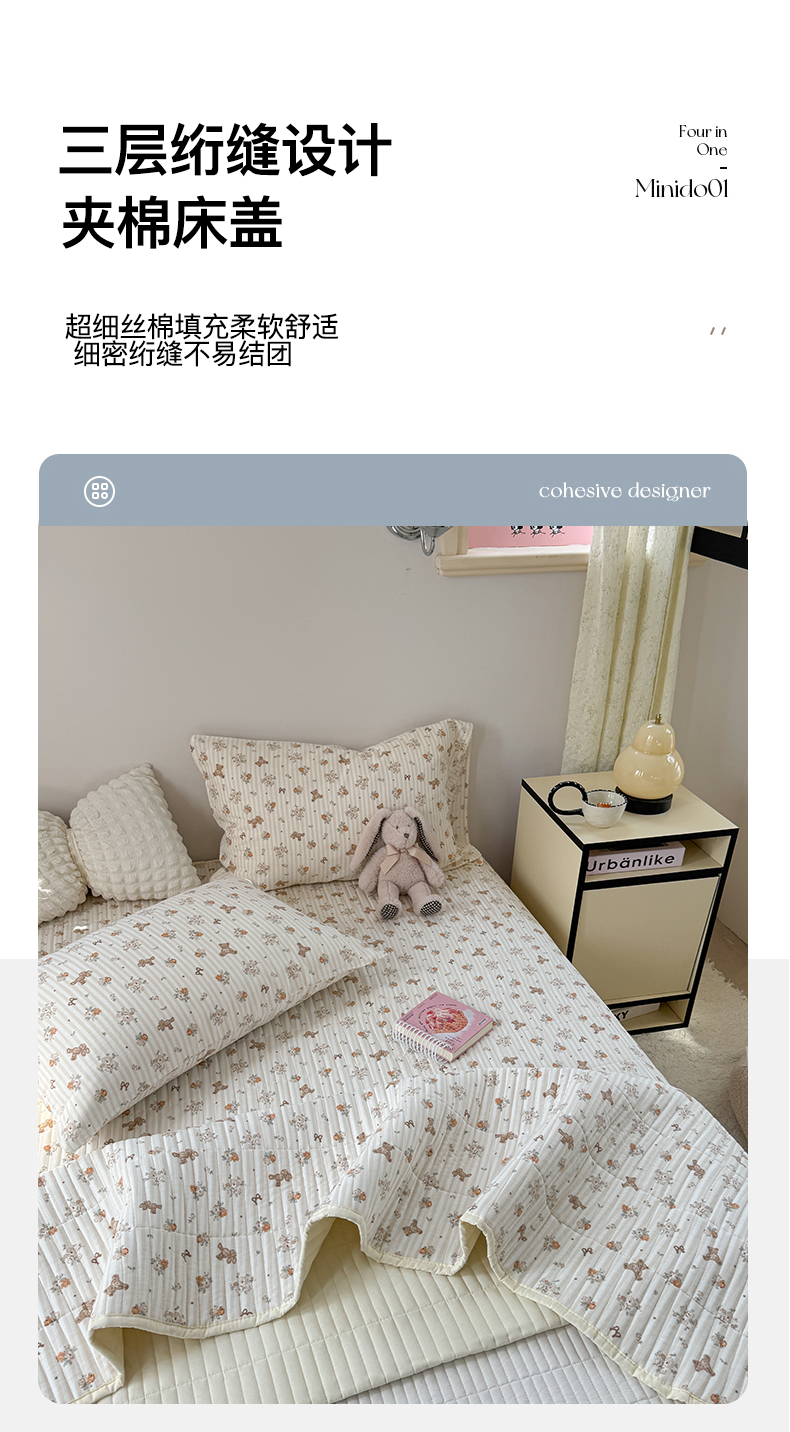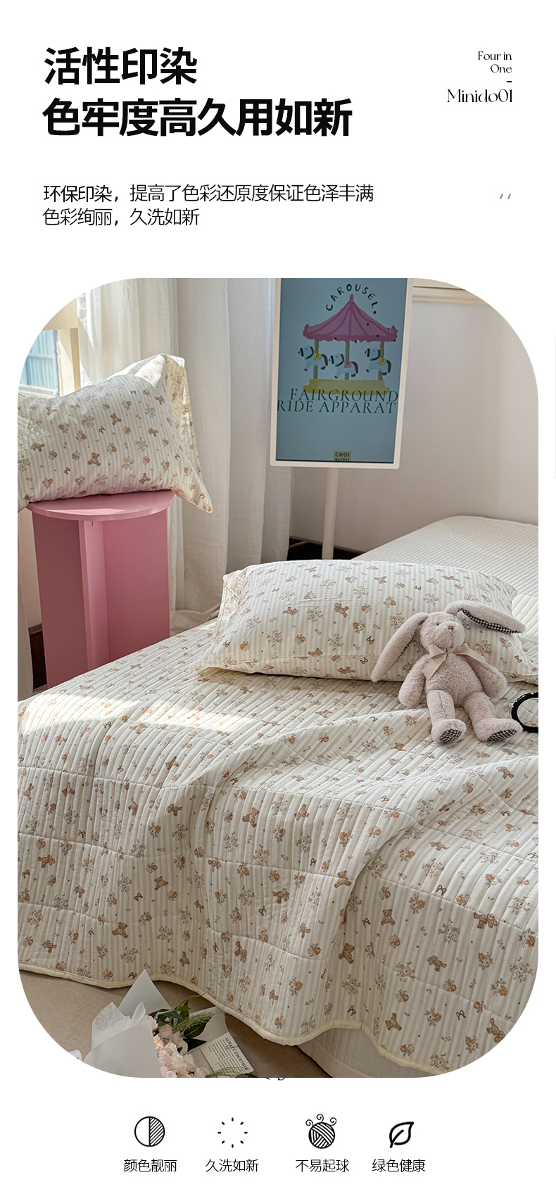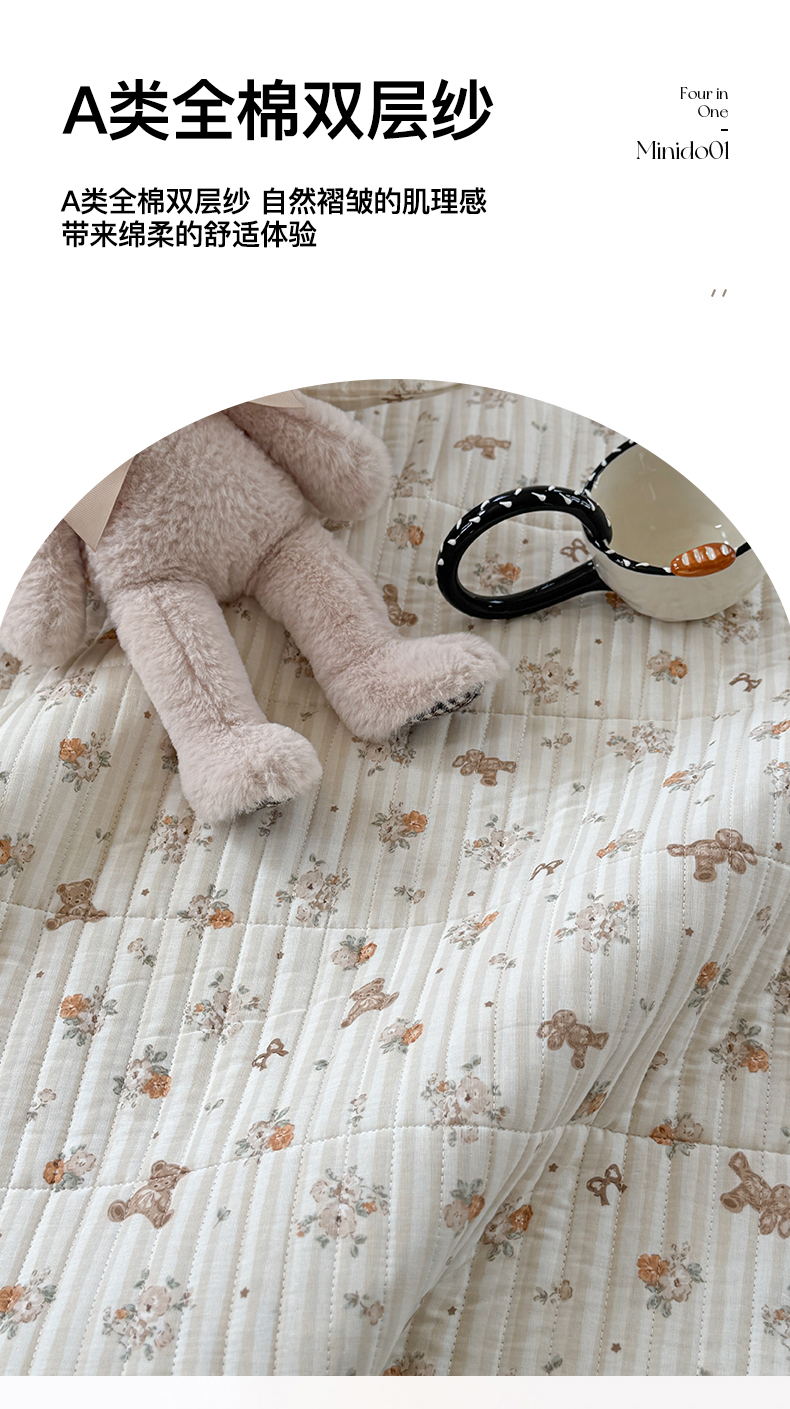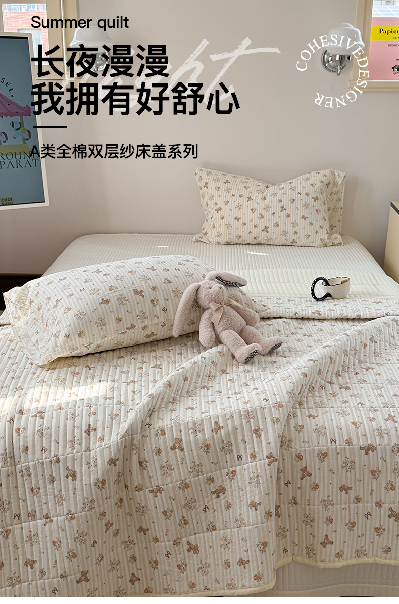 商品名称:TT.one 塔塔家居 2025新款全棉双层纱贝壳边夏被系列 床盖·睡睡熊