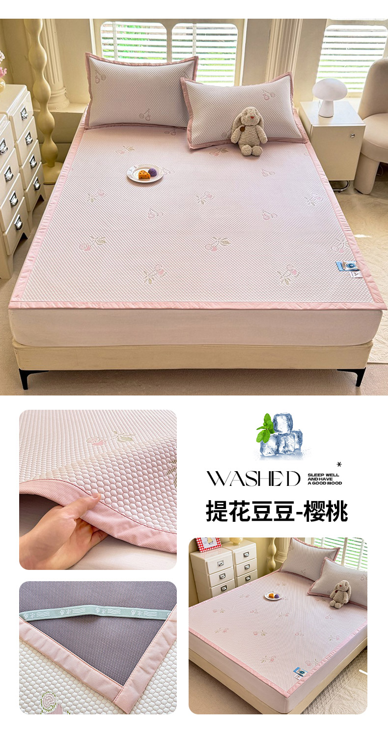 商品名称:绒世界 2025新款A类提花凉感豆豆复合凉席套件 提花豆豆-樱桃