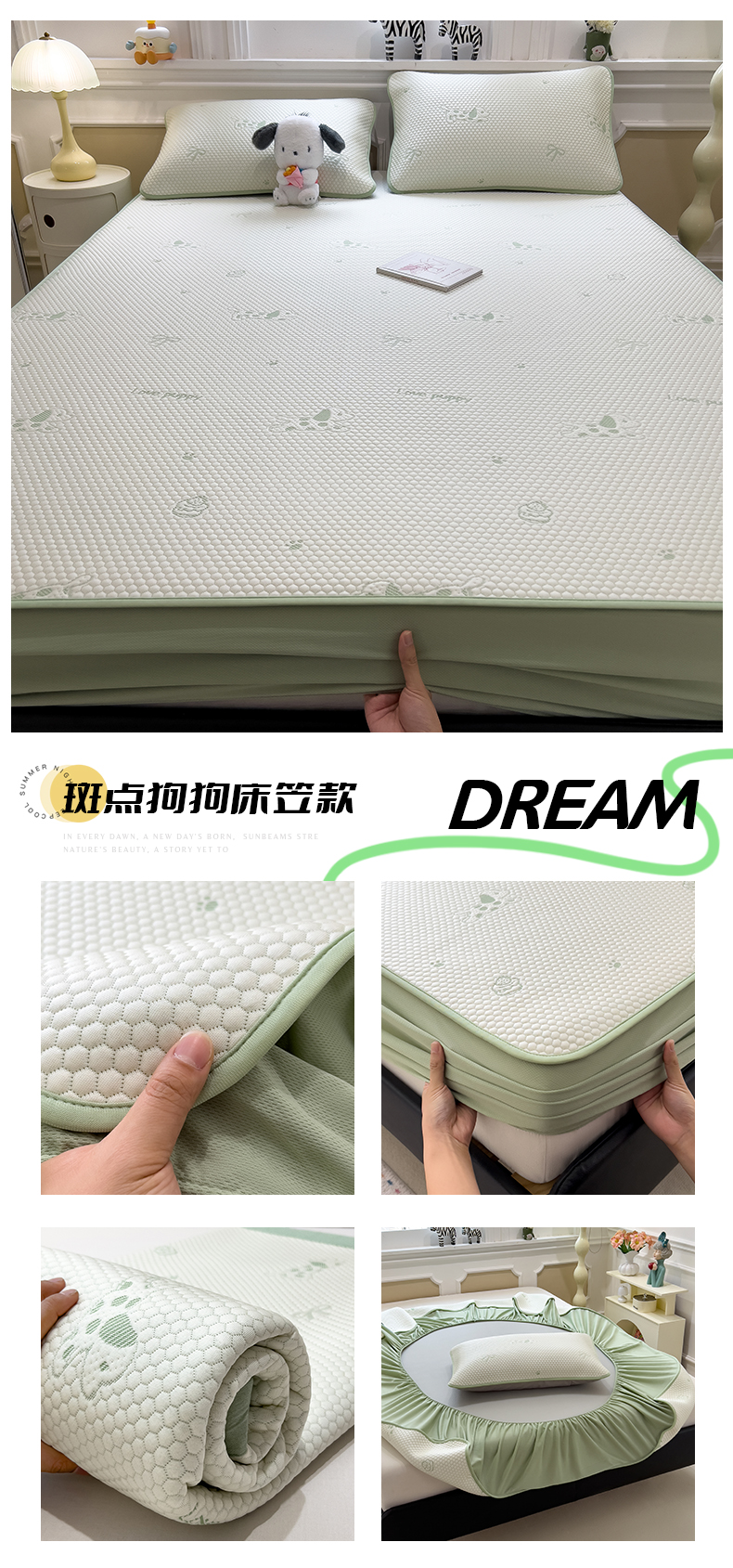 倾慕家纺 2025年新款PE豆豆提花凉席卡通系列-床笠款 斑点狗狗