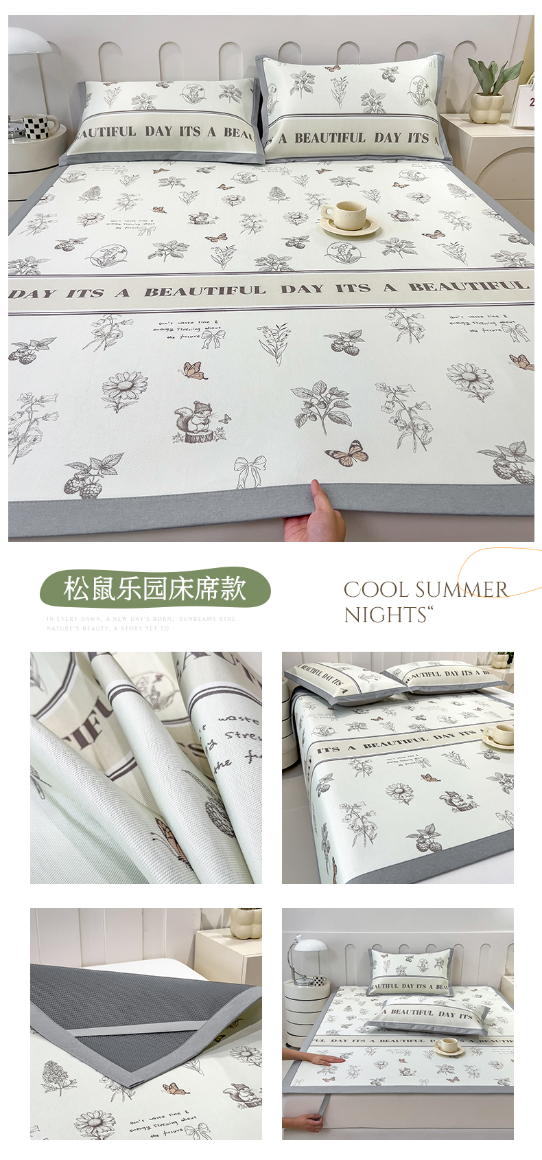 倾慕家纺 2025年新款600D丝滑冰丝凉席-床席款 松鼠乐园