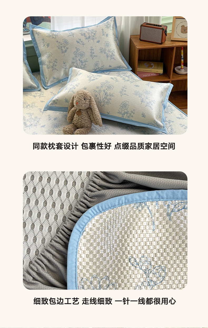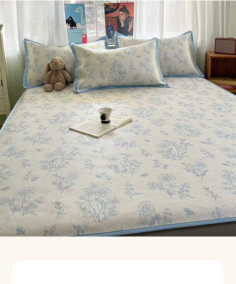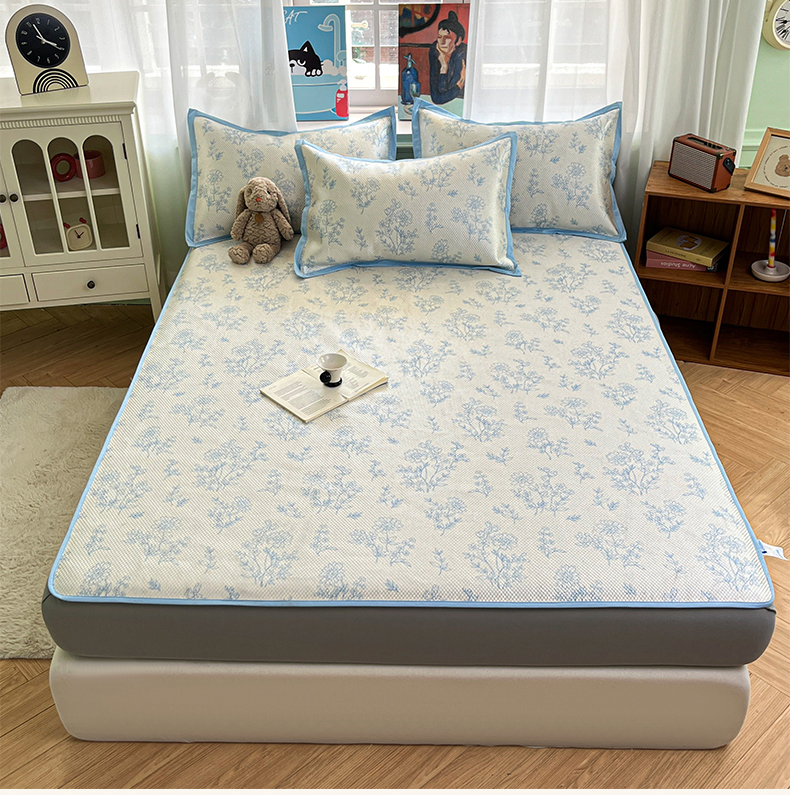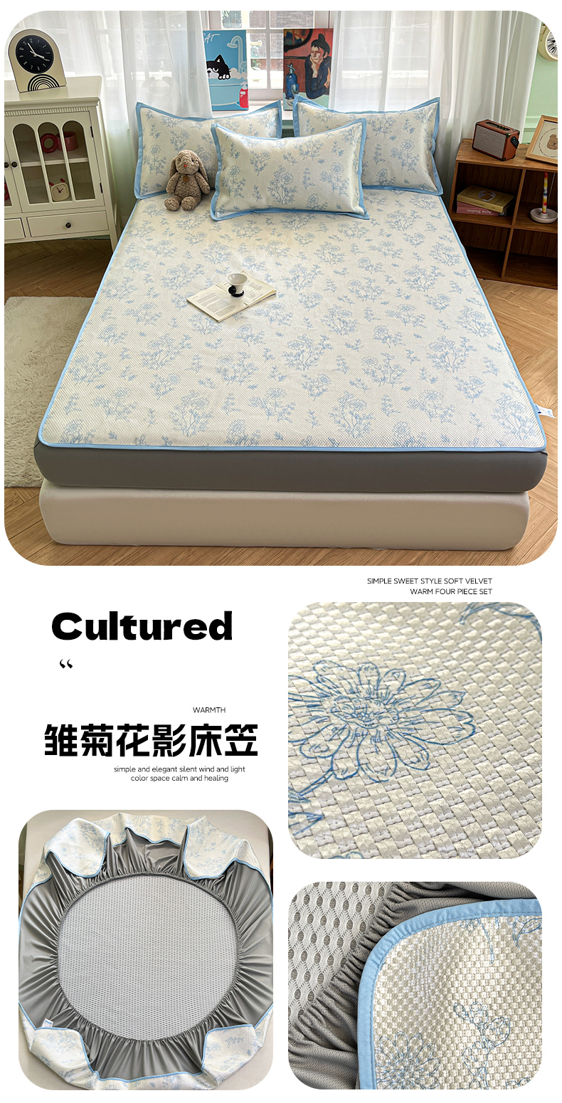 商品名称:布卢姆床垫2025新款A类数码印花冰藤席夏凉席--床笠款 雏菊花影床笠