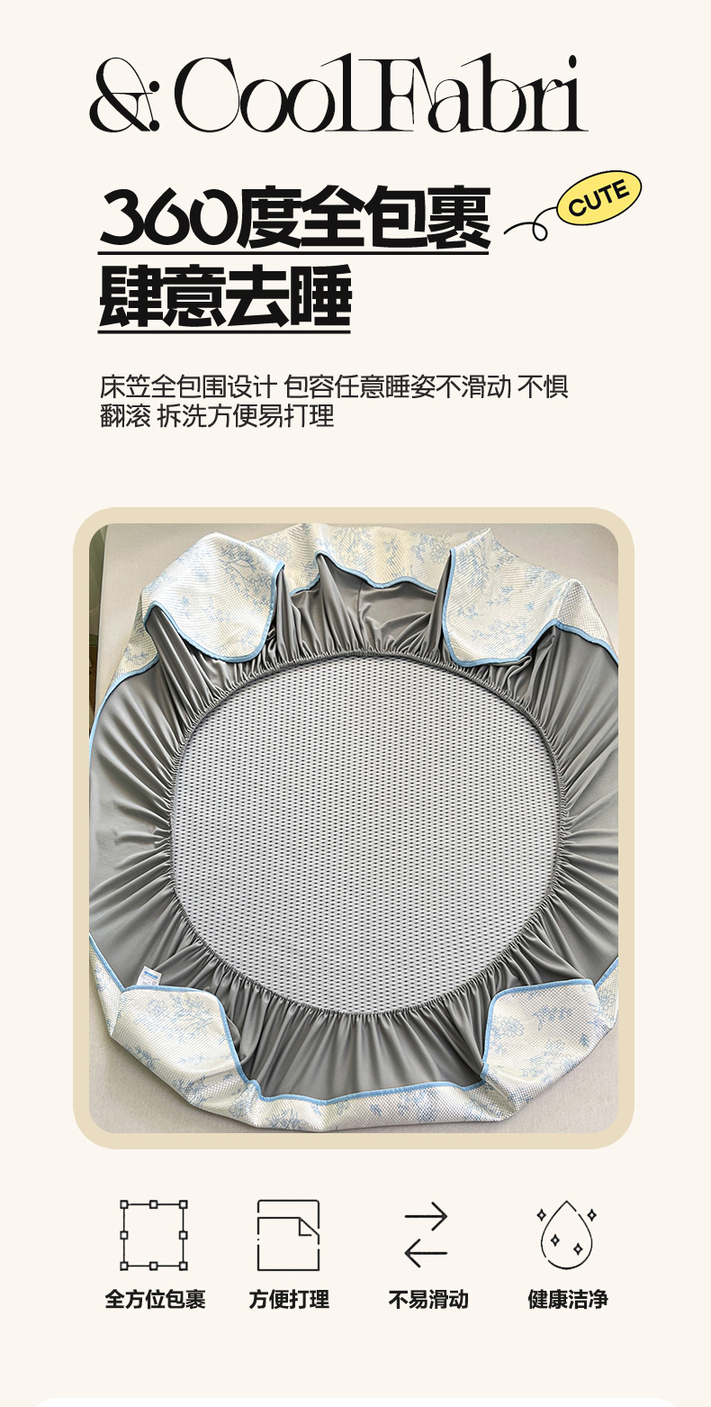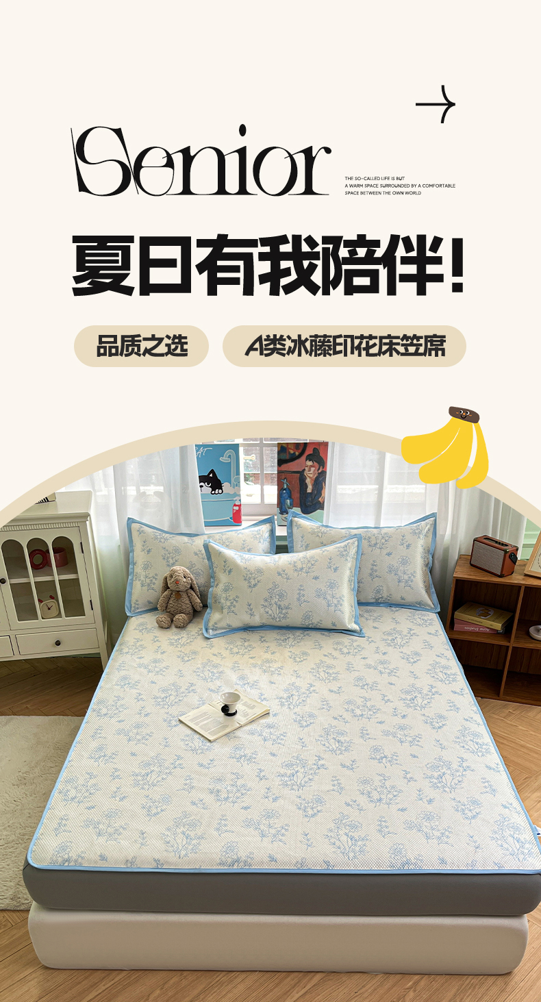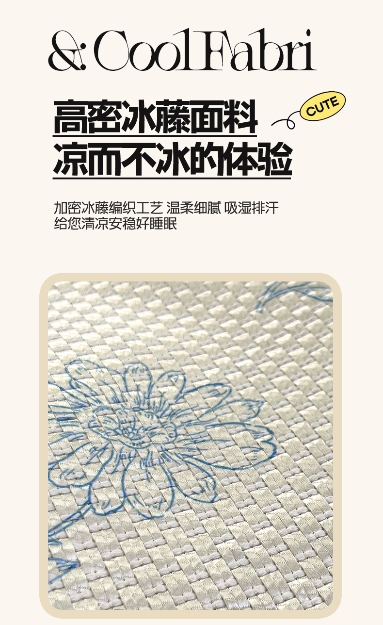商品名称:布卢姆床垫2025新款A类数码印花冰藤席夏凉席--床笠款 雏菊花影床笠