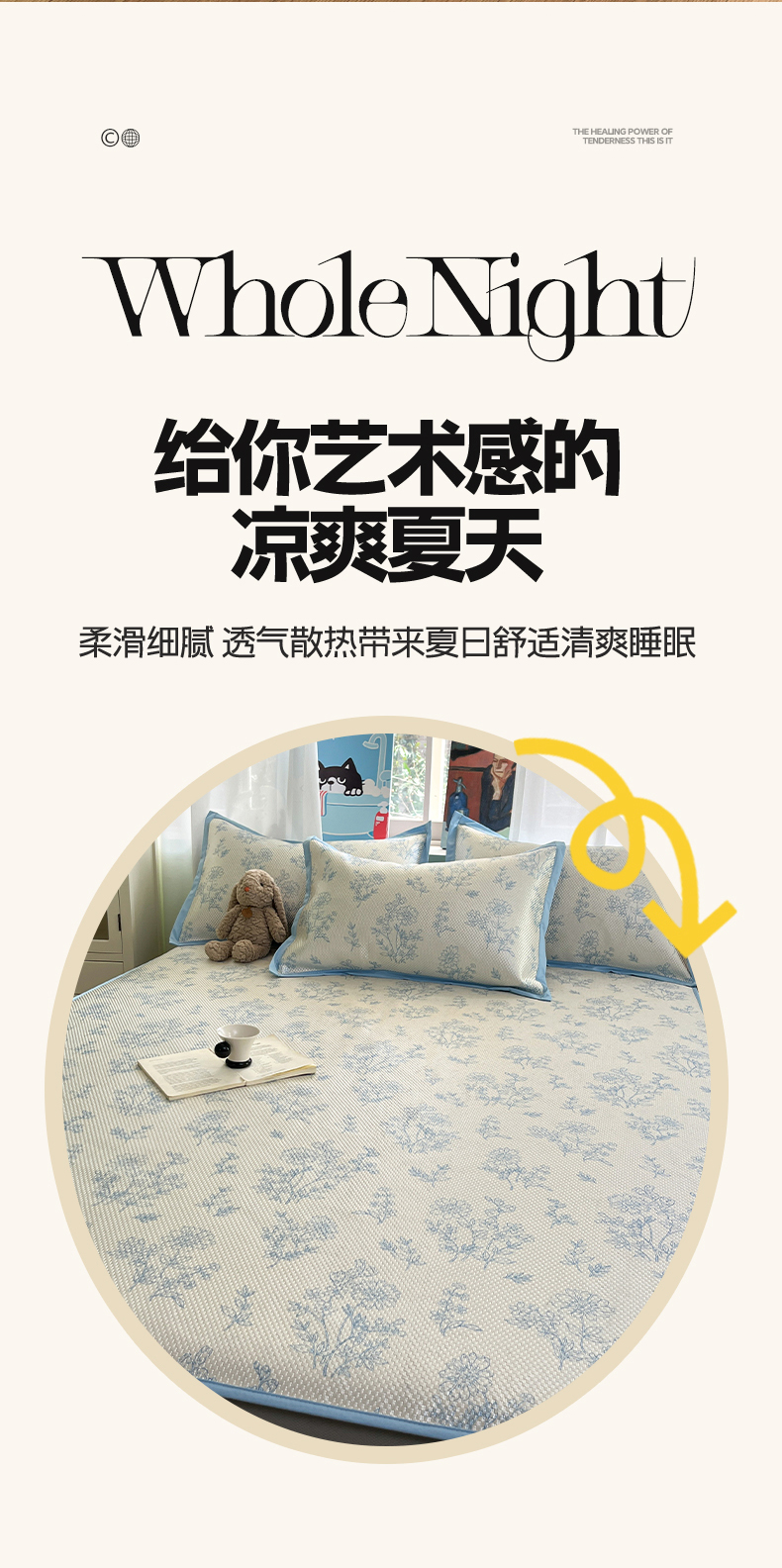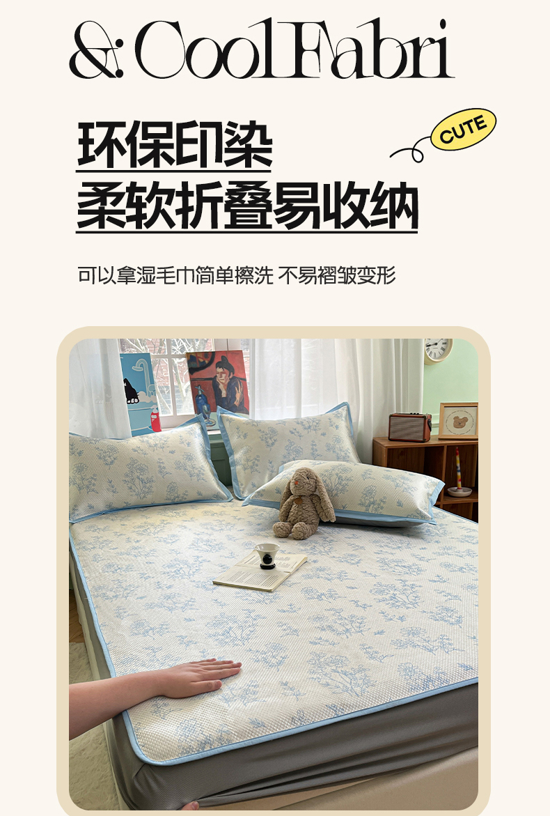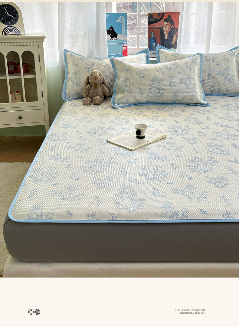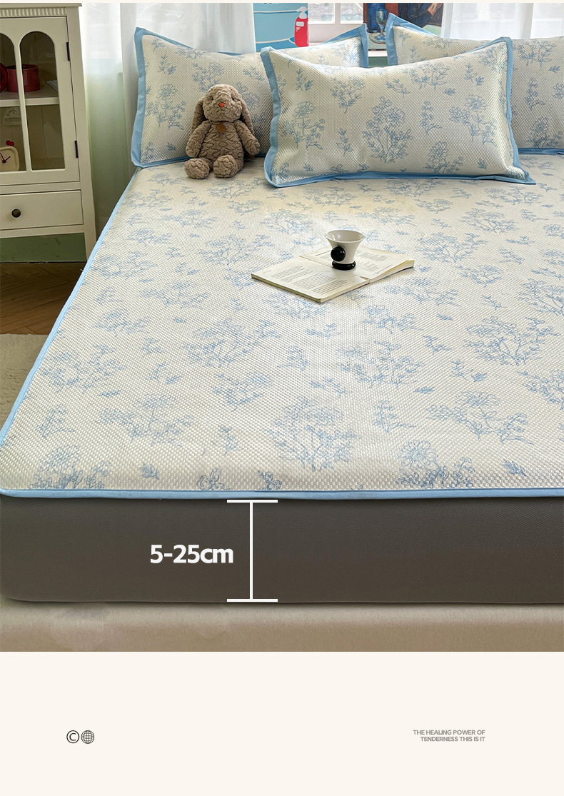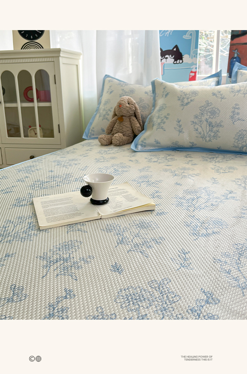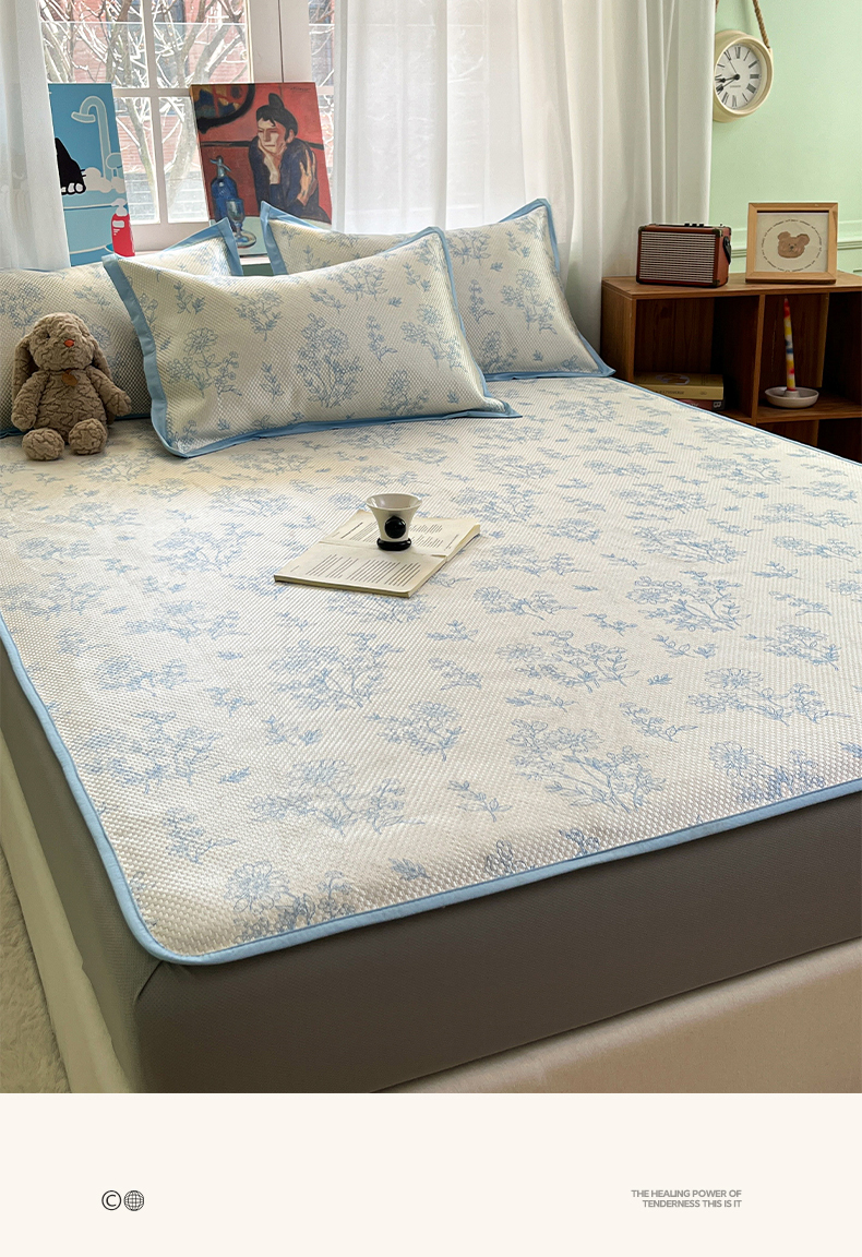 布卢姆床垫2025新款A类数码印花冰藤席夏凉席--床笠款 雏菊花影床笠
