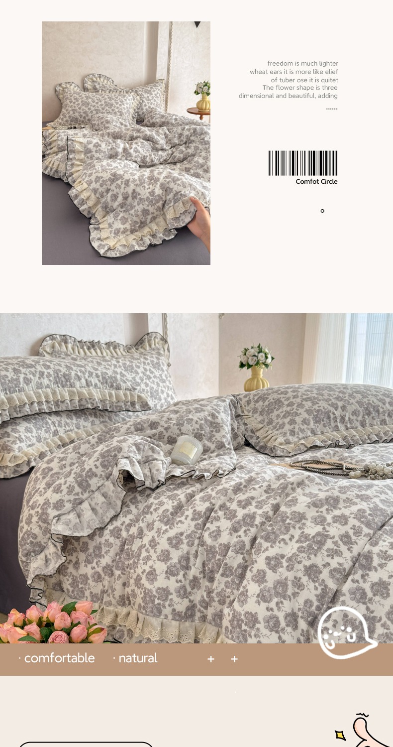 (总)简宜家居 2023新款纯棉全棉斜纹小清新宽边四件套,初遇见,繁花咖,花忆粉,青稚,倾心紫,素雅灰,东篱,锦簇,烂漫,浅牧