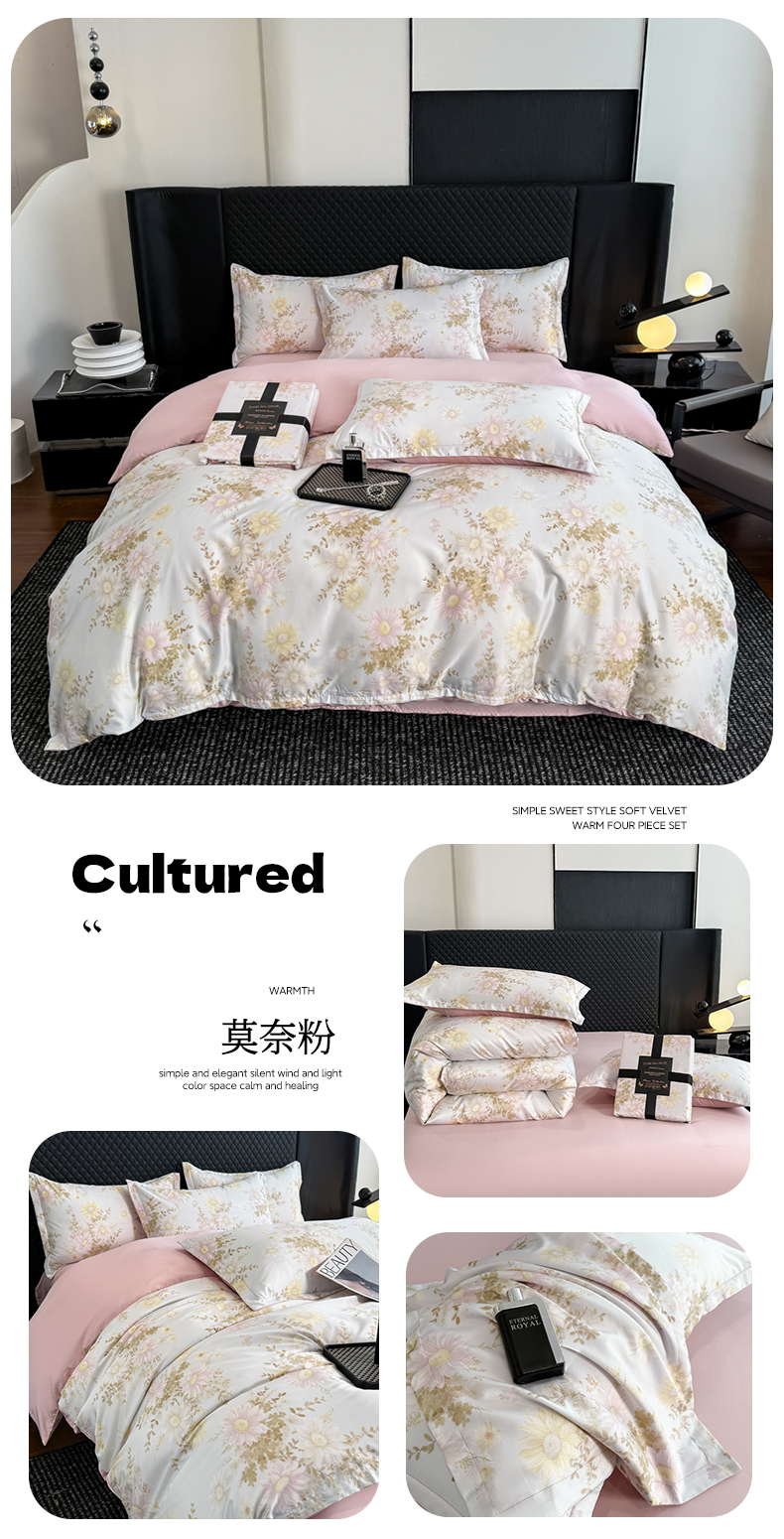 (总)晚爱家纺(原晚安家居) 2025新款宽边纽扣款雕花绒四件套烂花立体雕花牛奶绒,寒冬-粉,西西里,琥珀流光,优雅花卉-灰,玫瑰花香灰,夜半花香,玫瑰之约-咖,叶语悠然,优雅花卉-咖